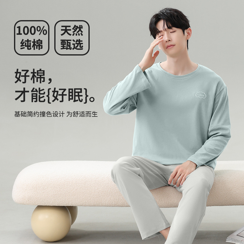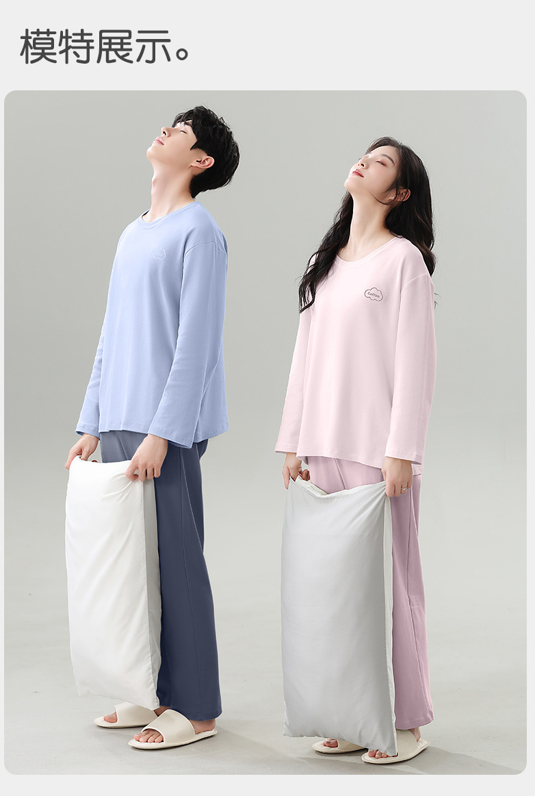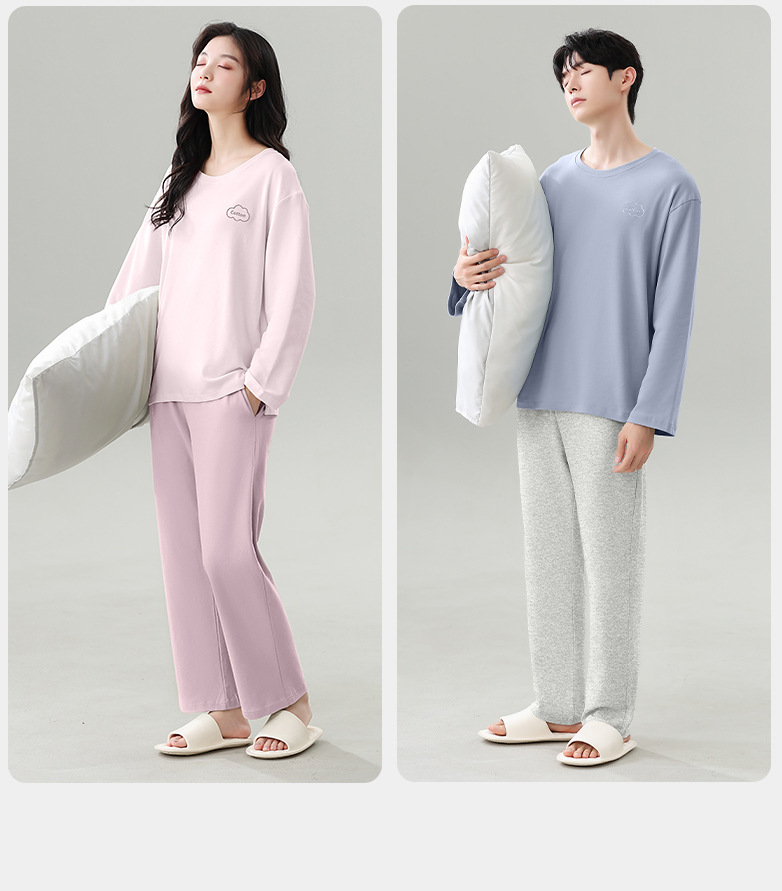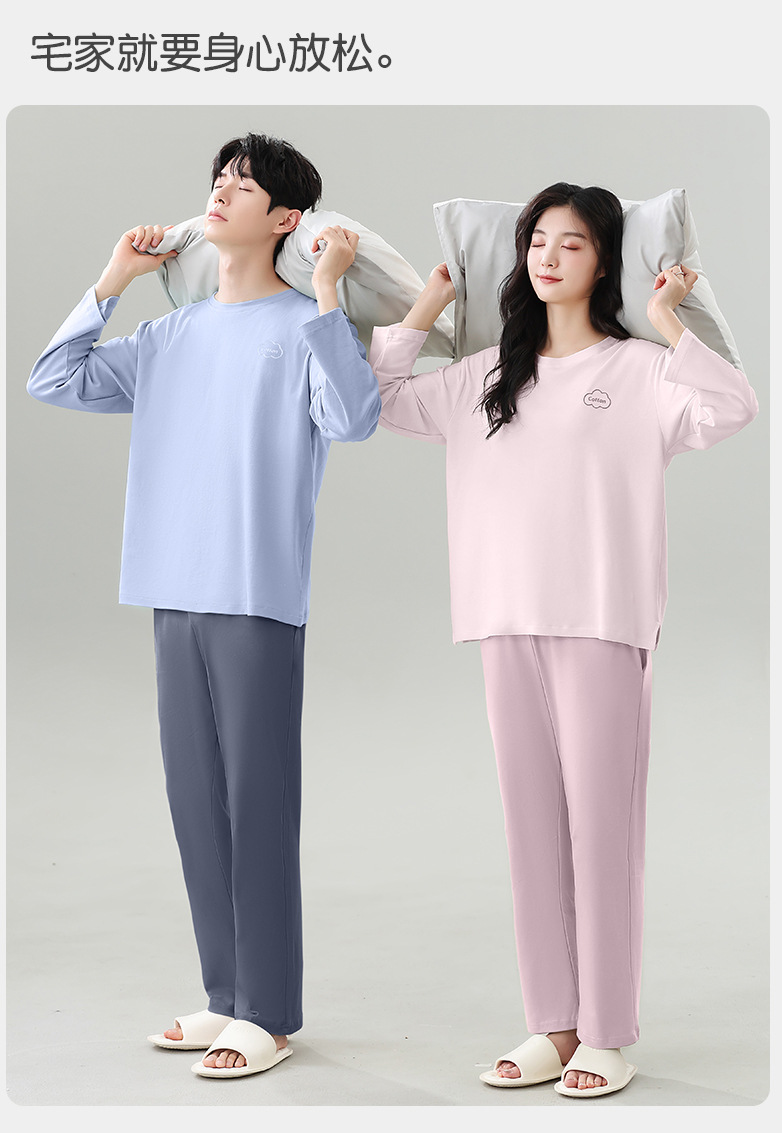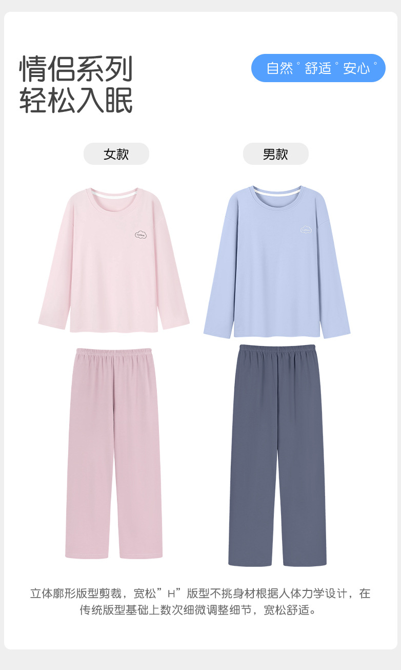 커플의 순수한면 잠옷 남성용 면화 봄과 여름 2025 새로운 긴 소매 풀오버 크루 넥 여성용 홈 의류 세트스토어 가기