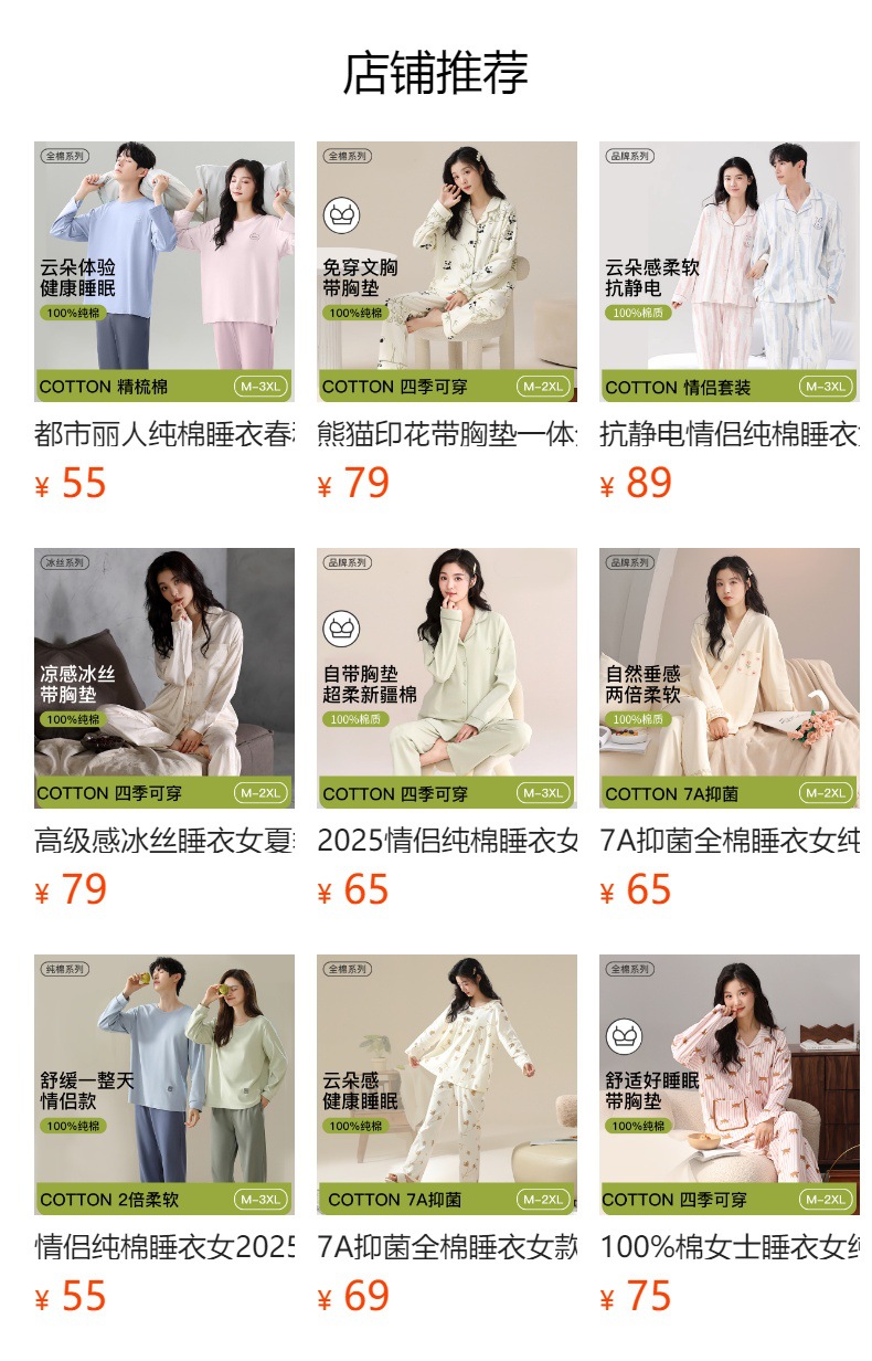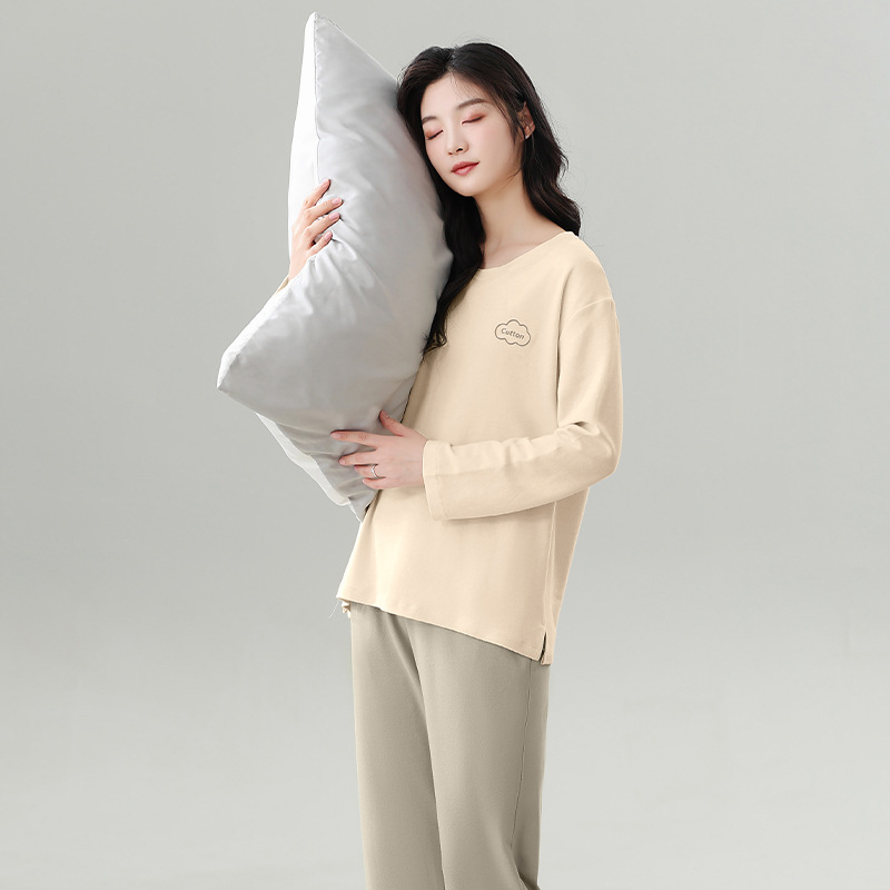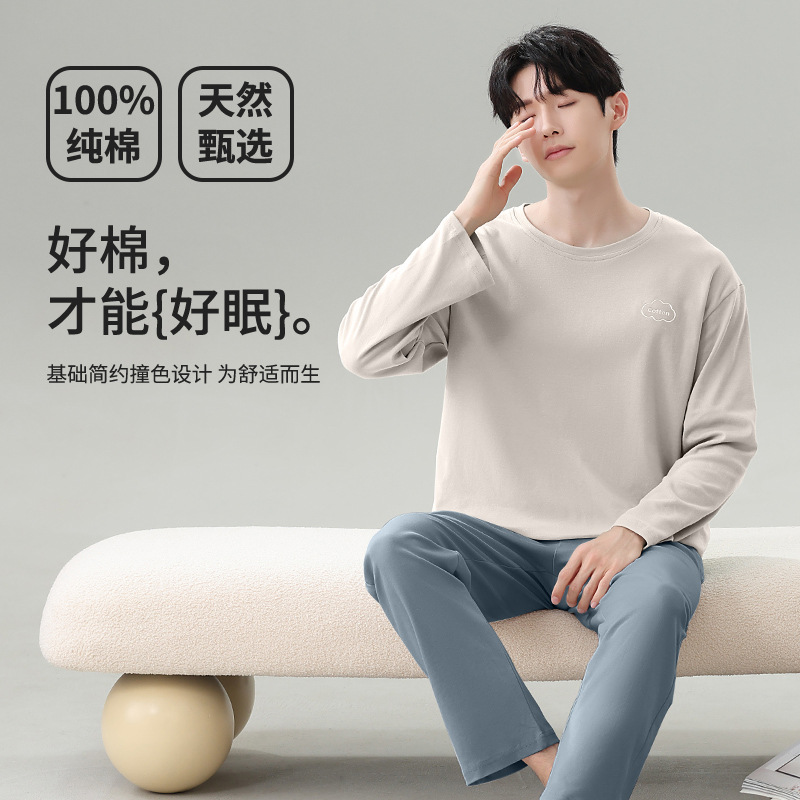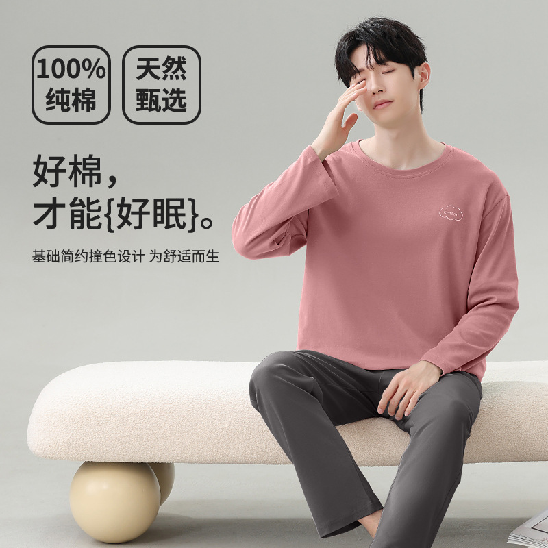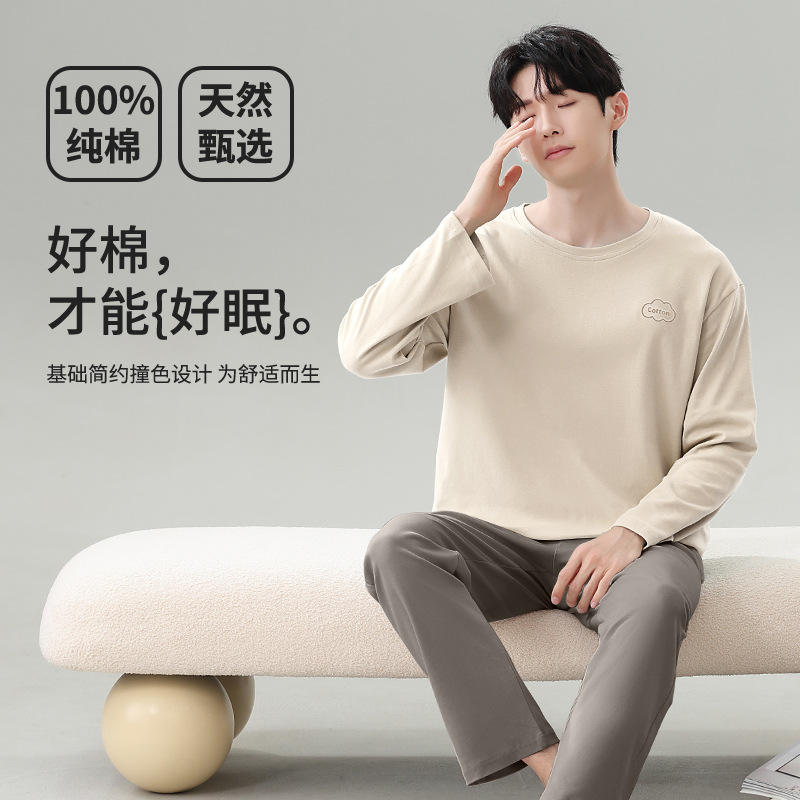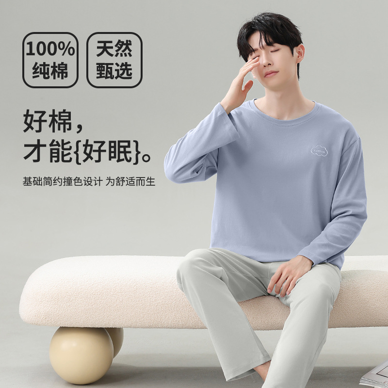 커플의 순수한면 잠옷 남성용 면화 봄과 여름 2025 새로운 긴 소매 풀오버 크루 넥 여성용 홈 의류 세트스토어 가기