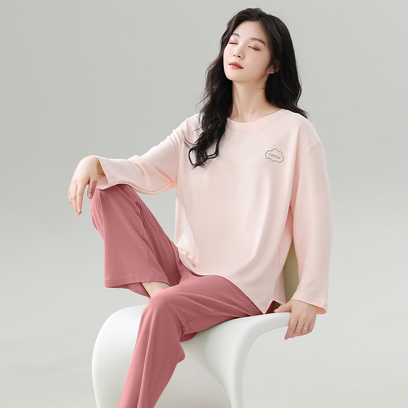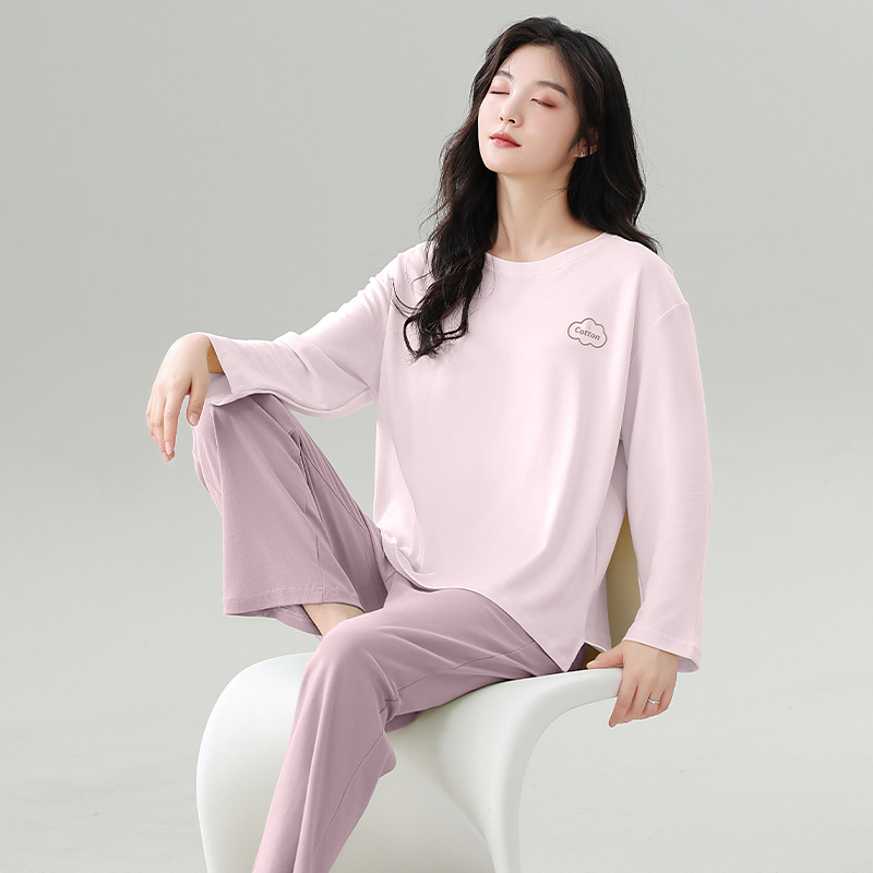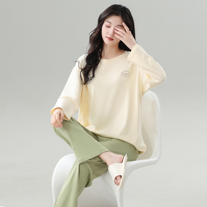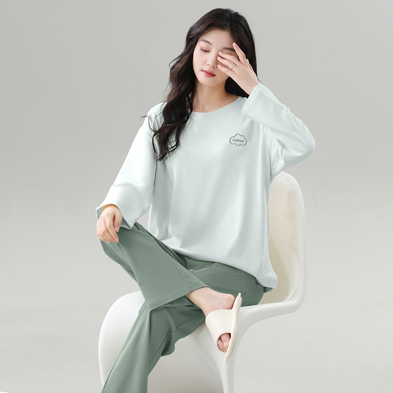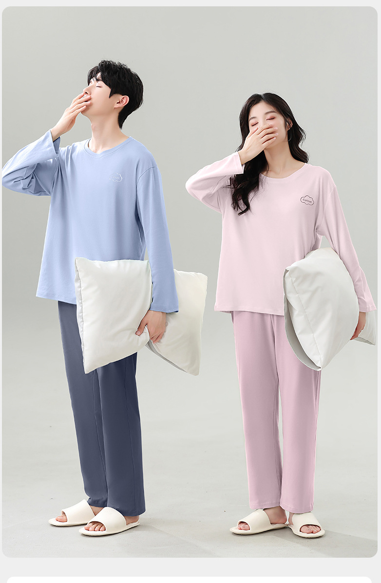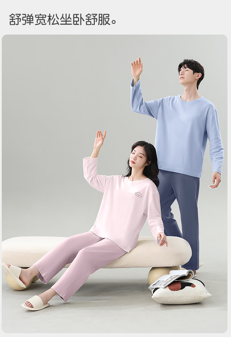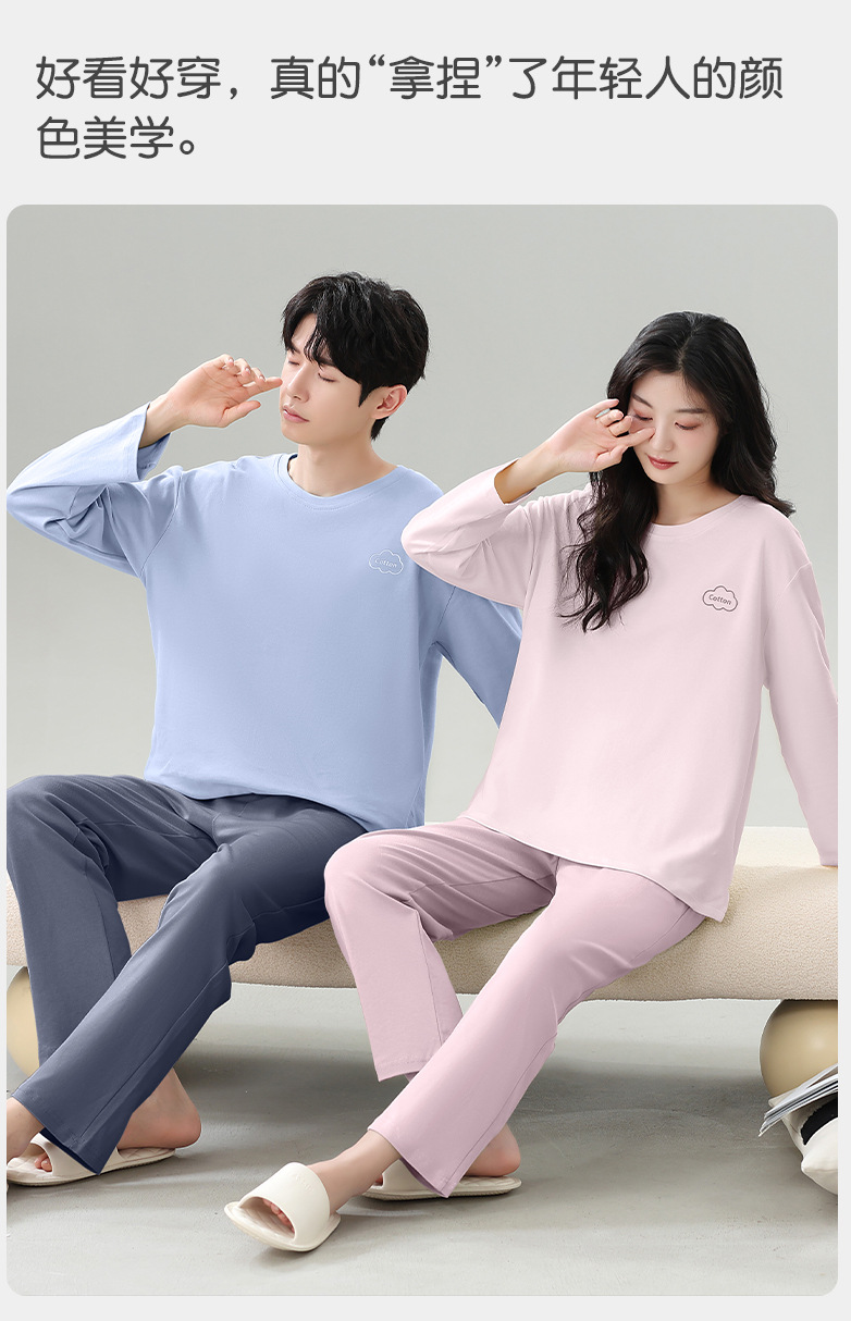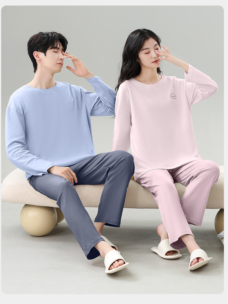커플의 순수한면 잠옷 남성용 면화 봄과 여름 2025 새로운 긴 소매 풀오버 크루 넥 여성용 홈 의류 세트