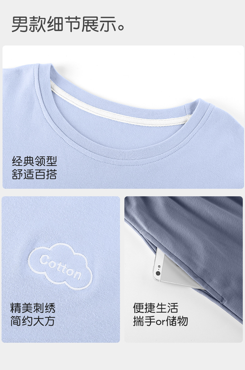 • 라이트 블루 [풀오버 스타일] [순면 100, 피부 친화적이고 편안함]
