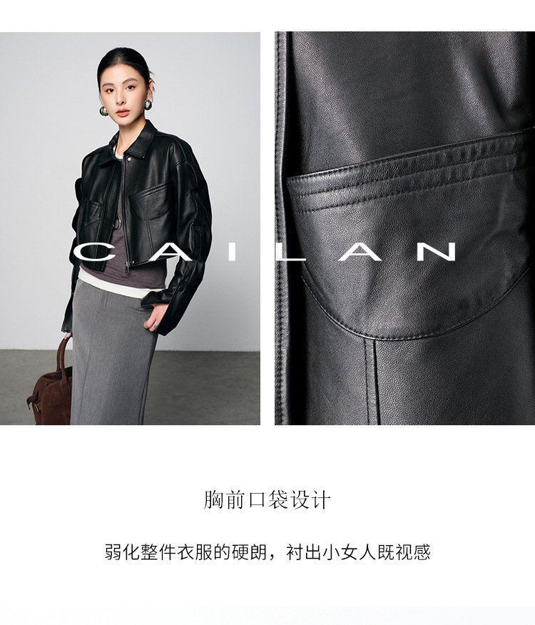 정품 가죽 야채 탄화 양모 2025 디자인 짧은 가죽 패션 가죽 자켓 코트 여성스토어 가기