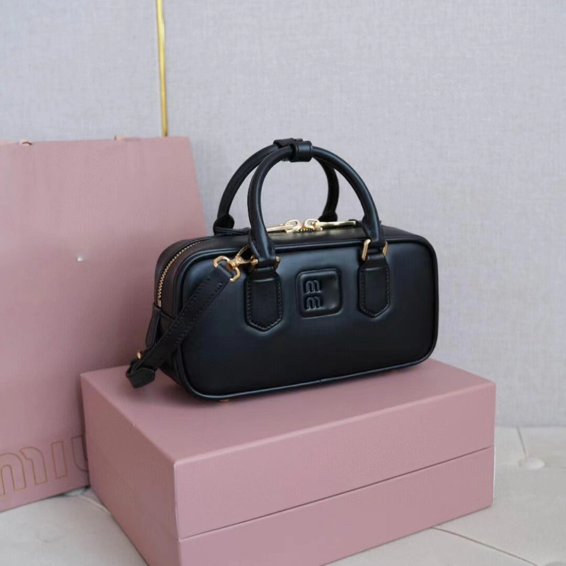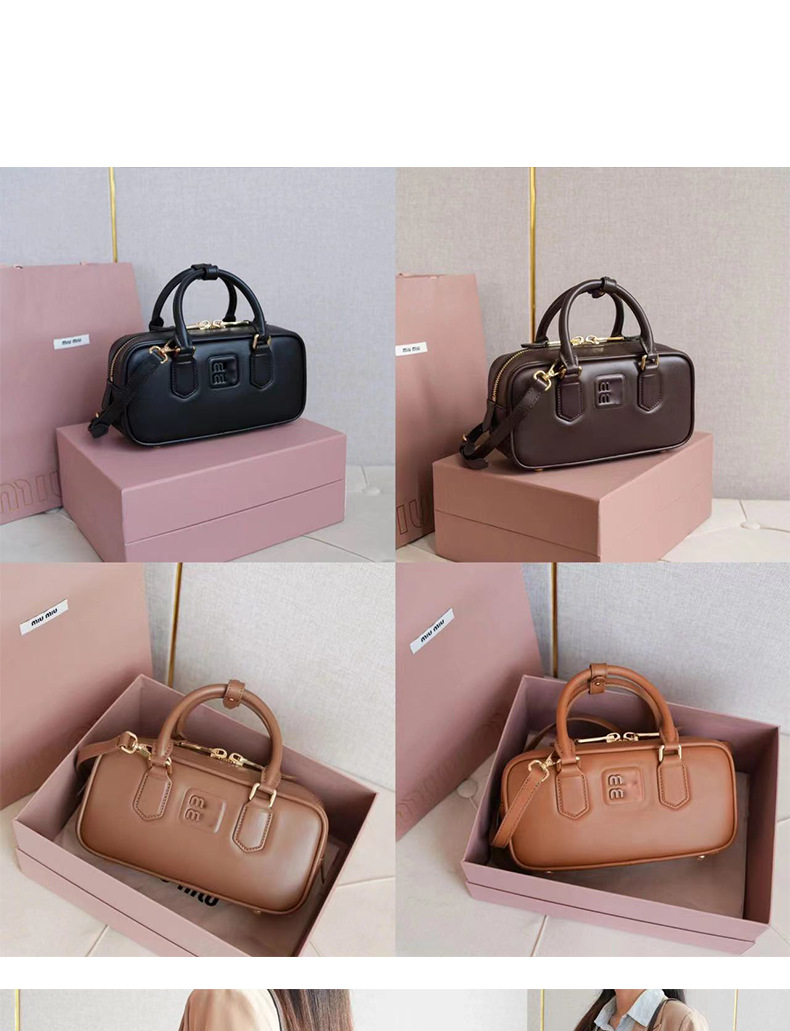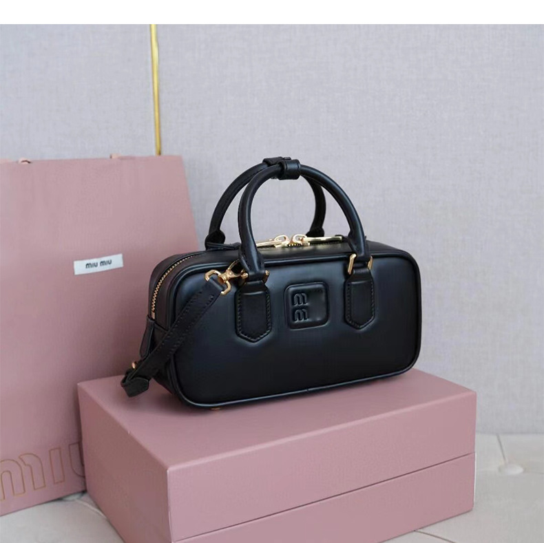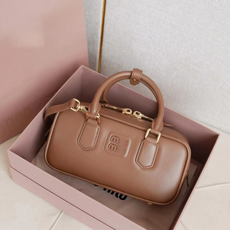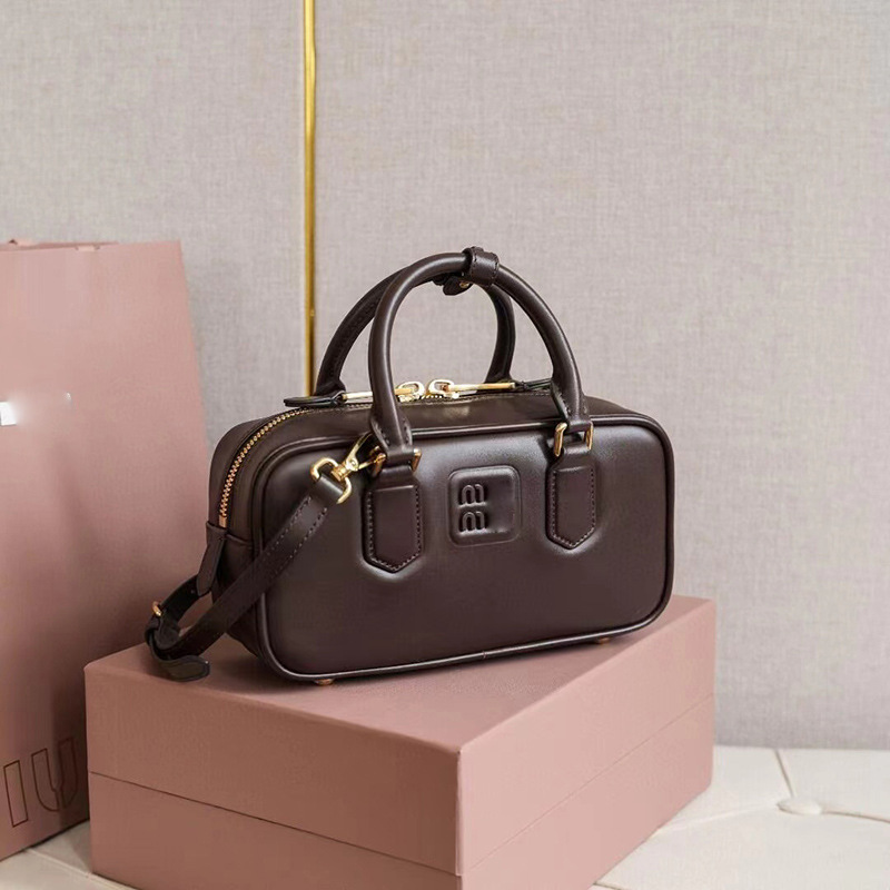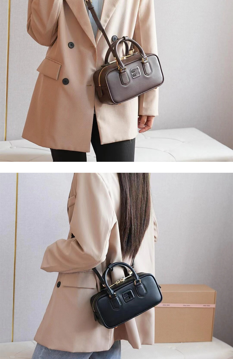 국경 간 여성 가방 2025 새로운 미우 홈 정품 가죽 빈티지 볼링 보스턴 가방 핸드백 어깨 크로스 바디 백