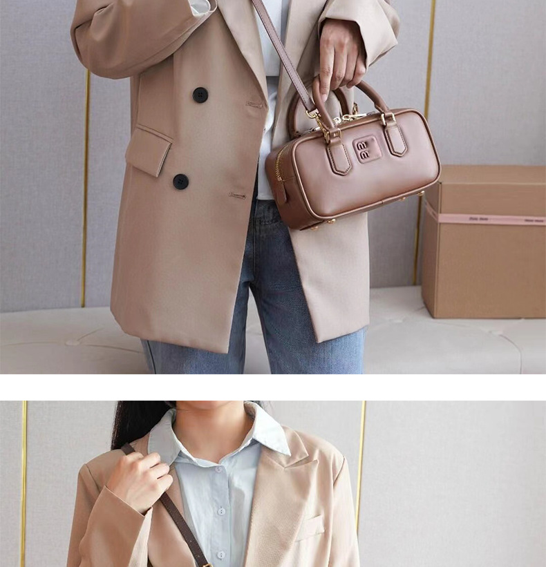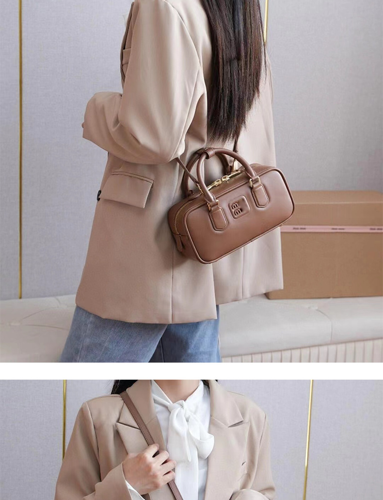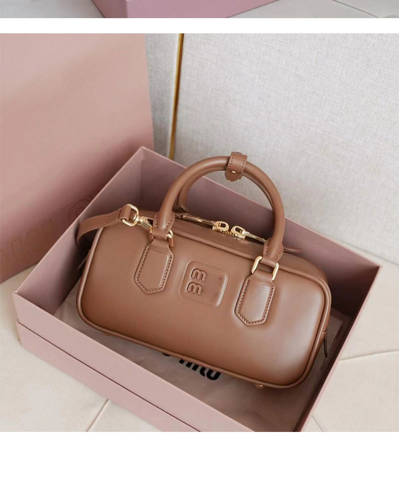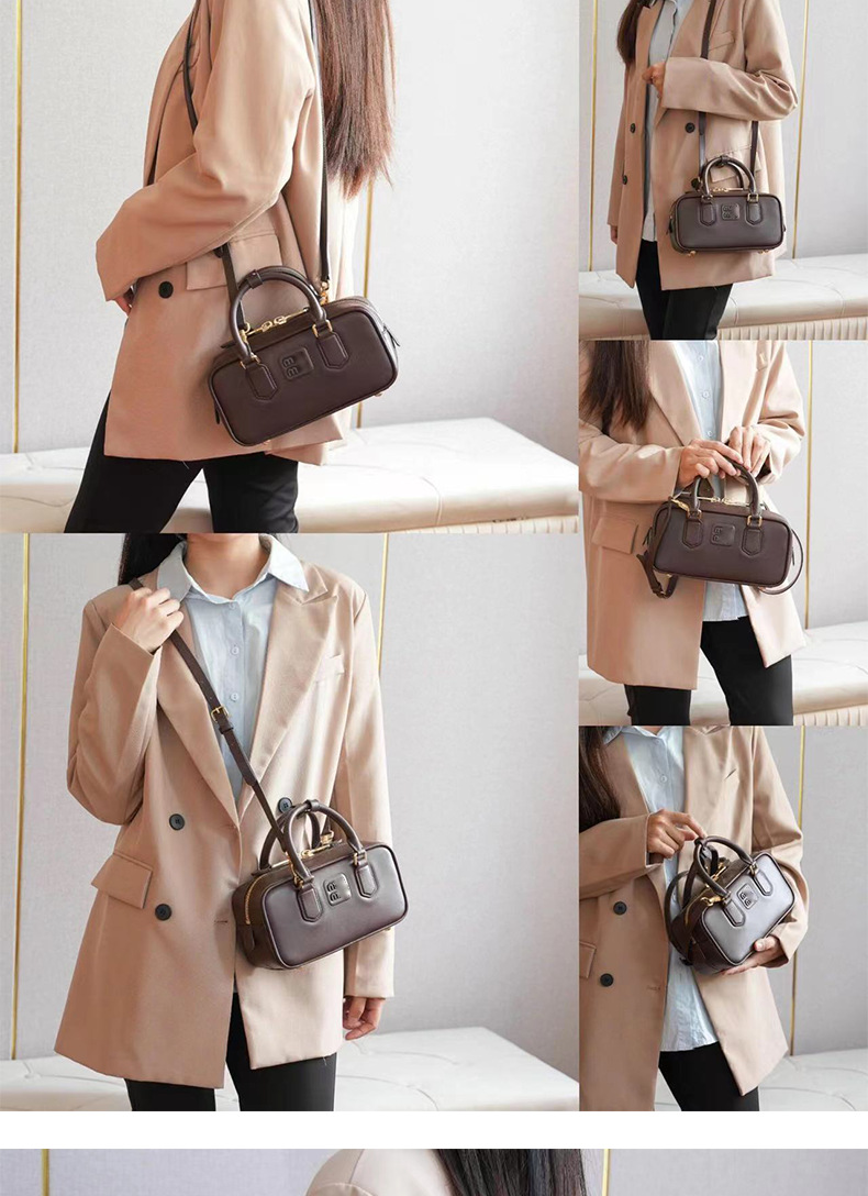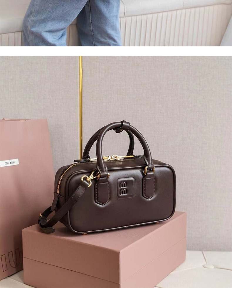 국경 간 여성 가방 2025 새로운 미우 홈 정품 가죽 빈티지 볼링 보스턴 가방 핸드백 어깨 크로스 바디 백