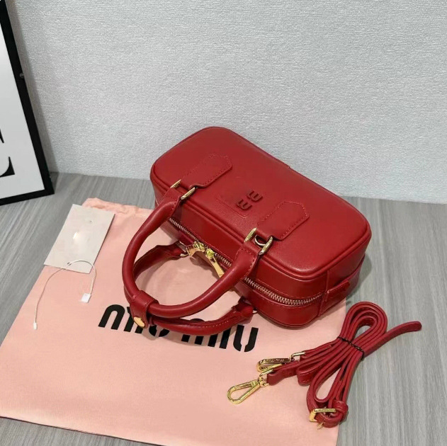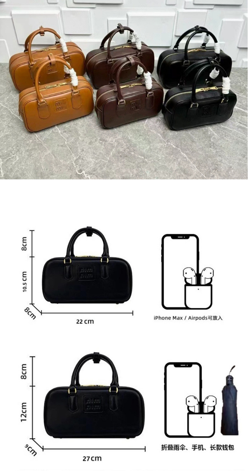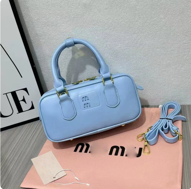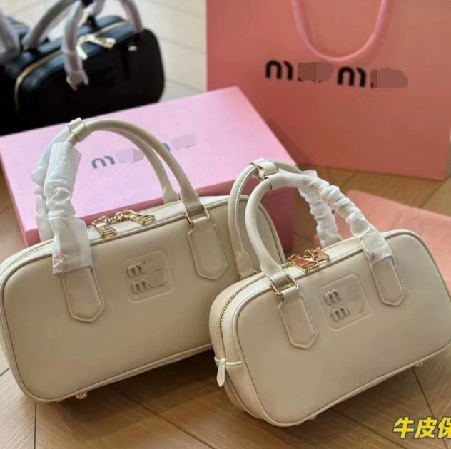 국경 간 여성 가방 2025 새로운 미우 홈 정품 가죽 빈티지 볼링 보스턴 가방 핸드백 어깨 크로스 바디 백스토어 가기