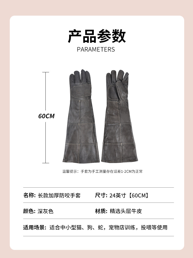 안티-개 물린 안티-바이트 고양이 애완 동물 안티-캐치 안티-뱀 안티-펑크 더블 레이어 대형 내구성 긴 두꺼운 장갑 개 훈련