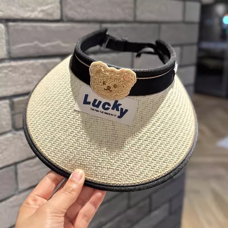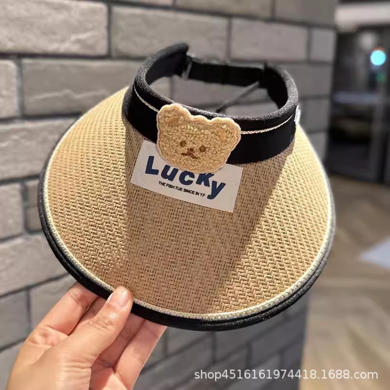 어린이 여름 태양 모자 새로운 곰 야외 여행 태양 모자 안티 자외선 귀여운 만화 빈 탑 태양 모자