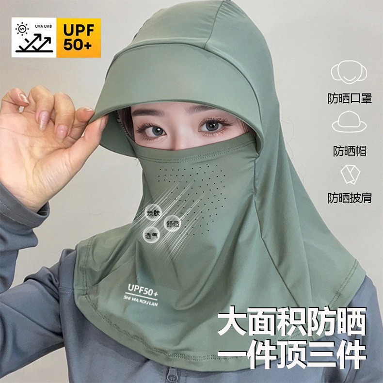 풀 페이스 태양 모자 어린이 여름 태양 보호 모자 UV 보호 야외 승마 목 보호 마스크 목도리 모자 시원한 느낌