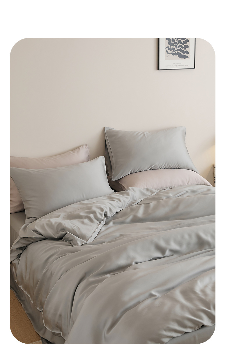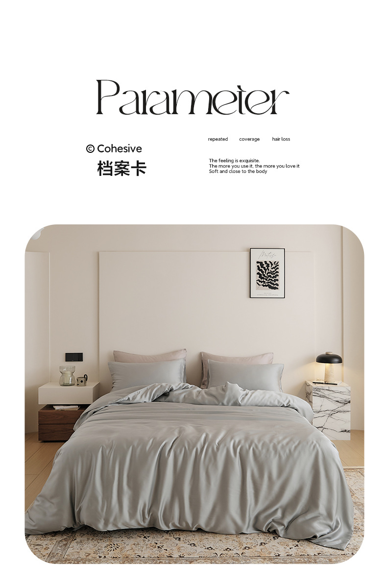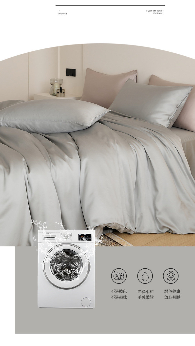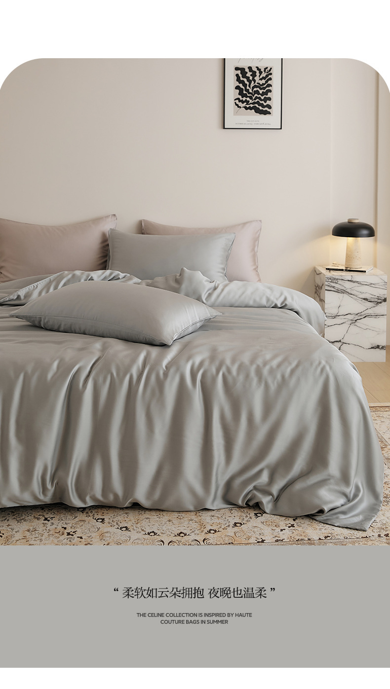 간단한 솔리드 컬러 4 피스 세트 60 Lyocell Lanjing Tencel 쿨 아이스 실크 침대 시트 퀼트 커버 라이트 럭셔리 침구