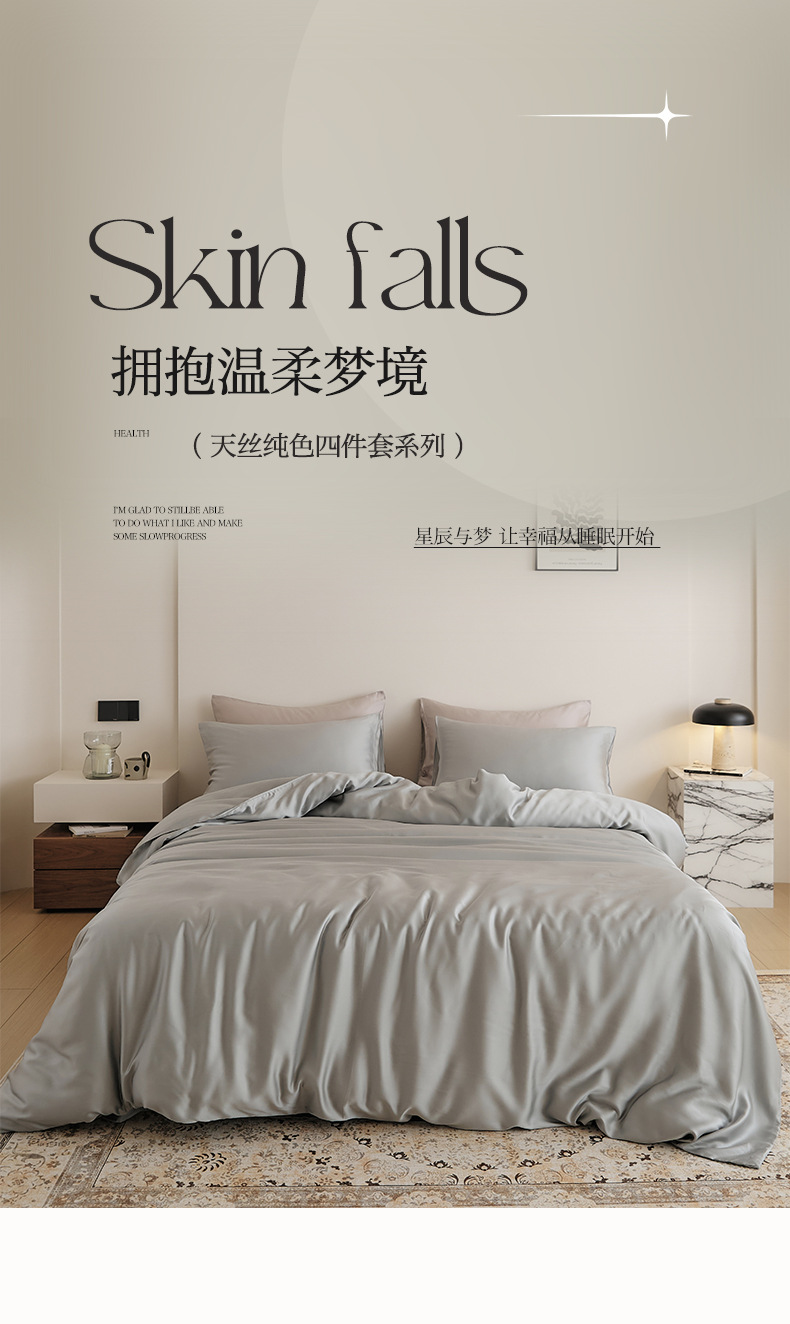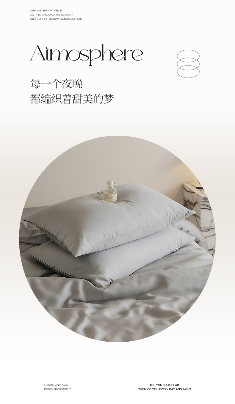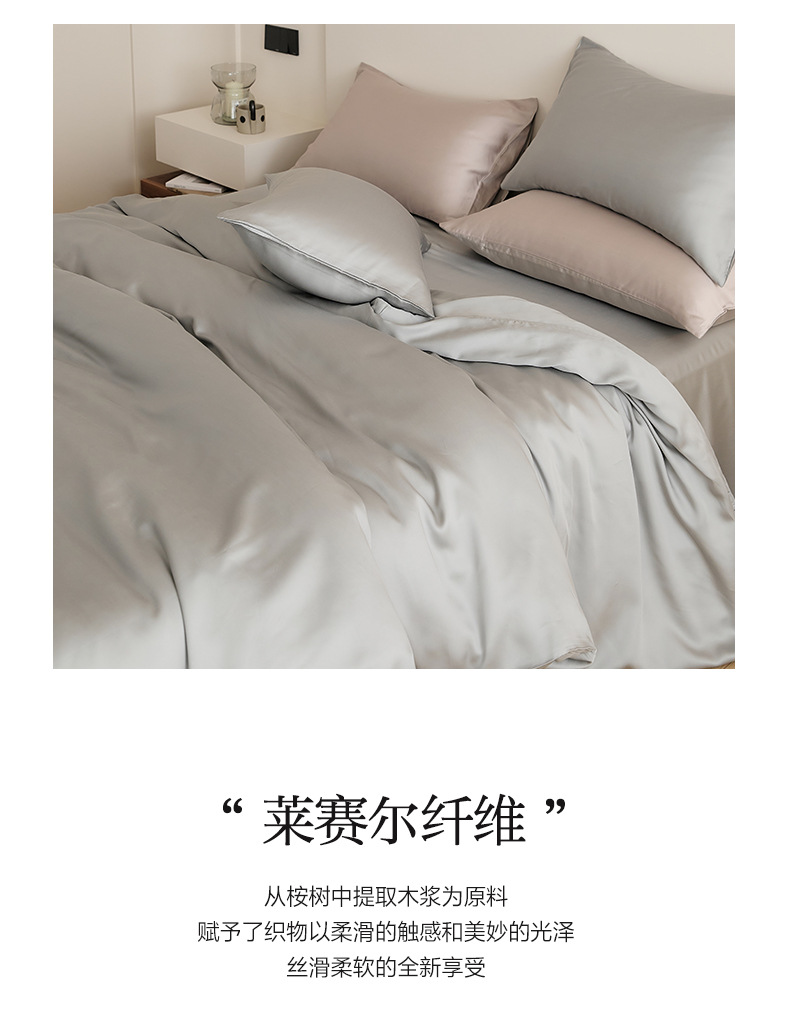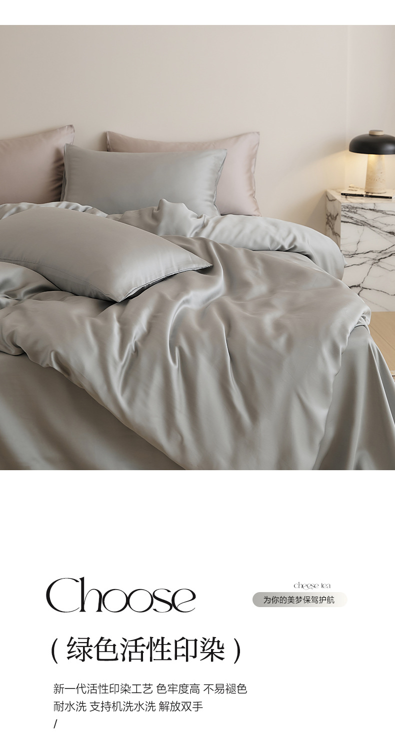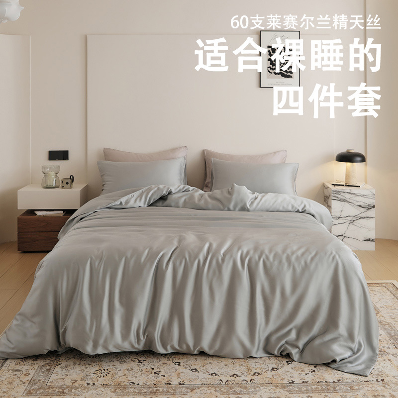 간단한 솔리드 컬러 4 피스 세트 60 Lyocell Lanjing Tencel 쿨 아이스 실크 침대 시트 퀼트 커버 라이트 럭셔리 침구스토어 가기