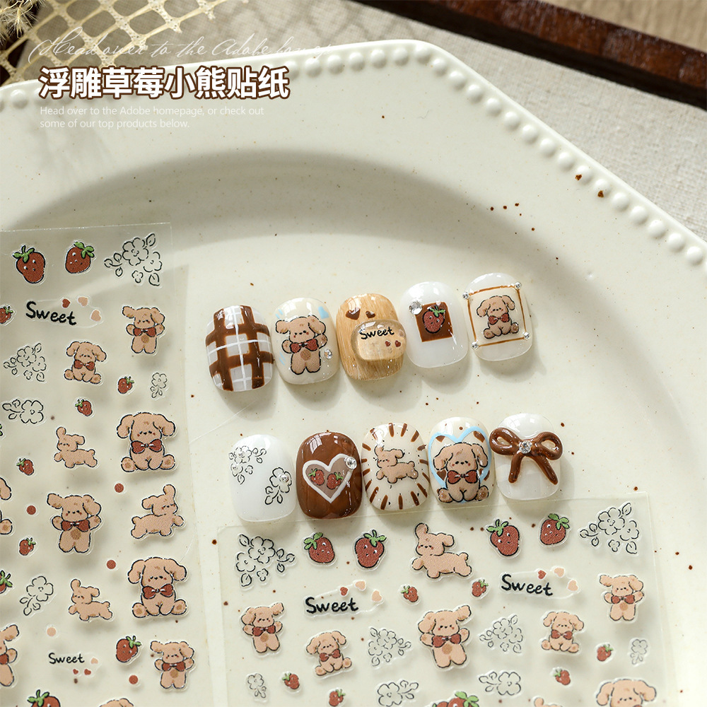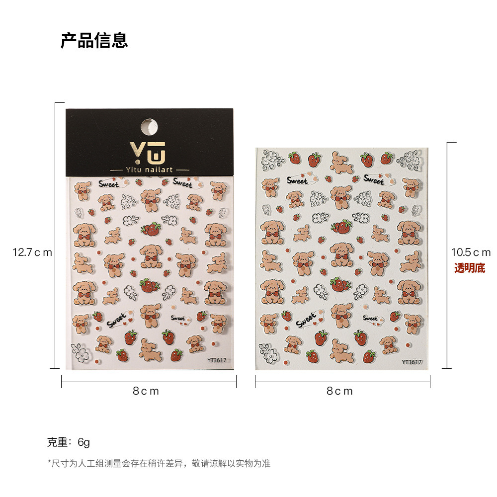 YITU 개미 그림 구호 곰 네일 아트 스티커 귀여운 만화 딸기 영어 간단한 바람 장식 스티커 YT3063스토어 가기