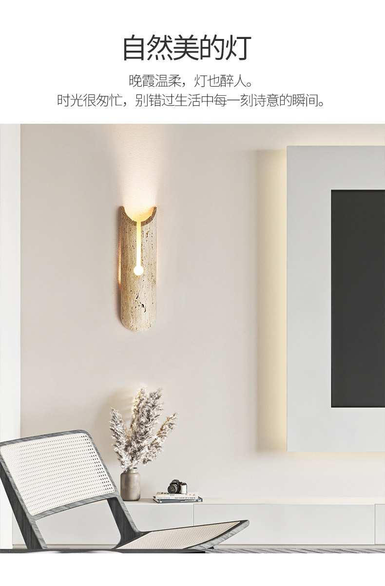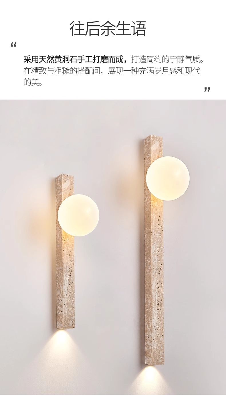 황색 석조등, 와비사비 스타일 침실 침대등, 레트로 민박 거실 배경벽 분위기 장식용 긴 벽등스토어 가기