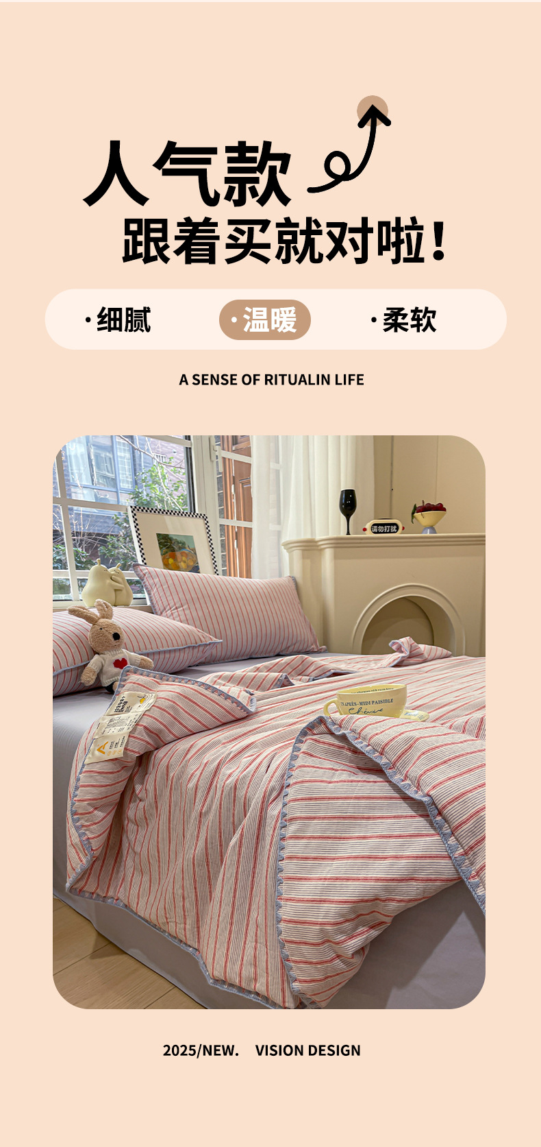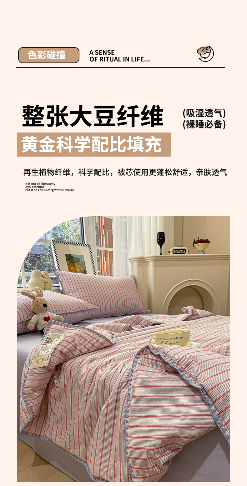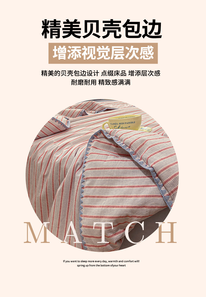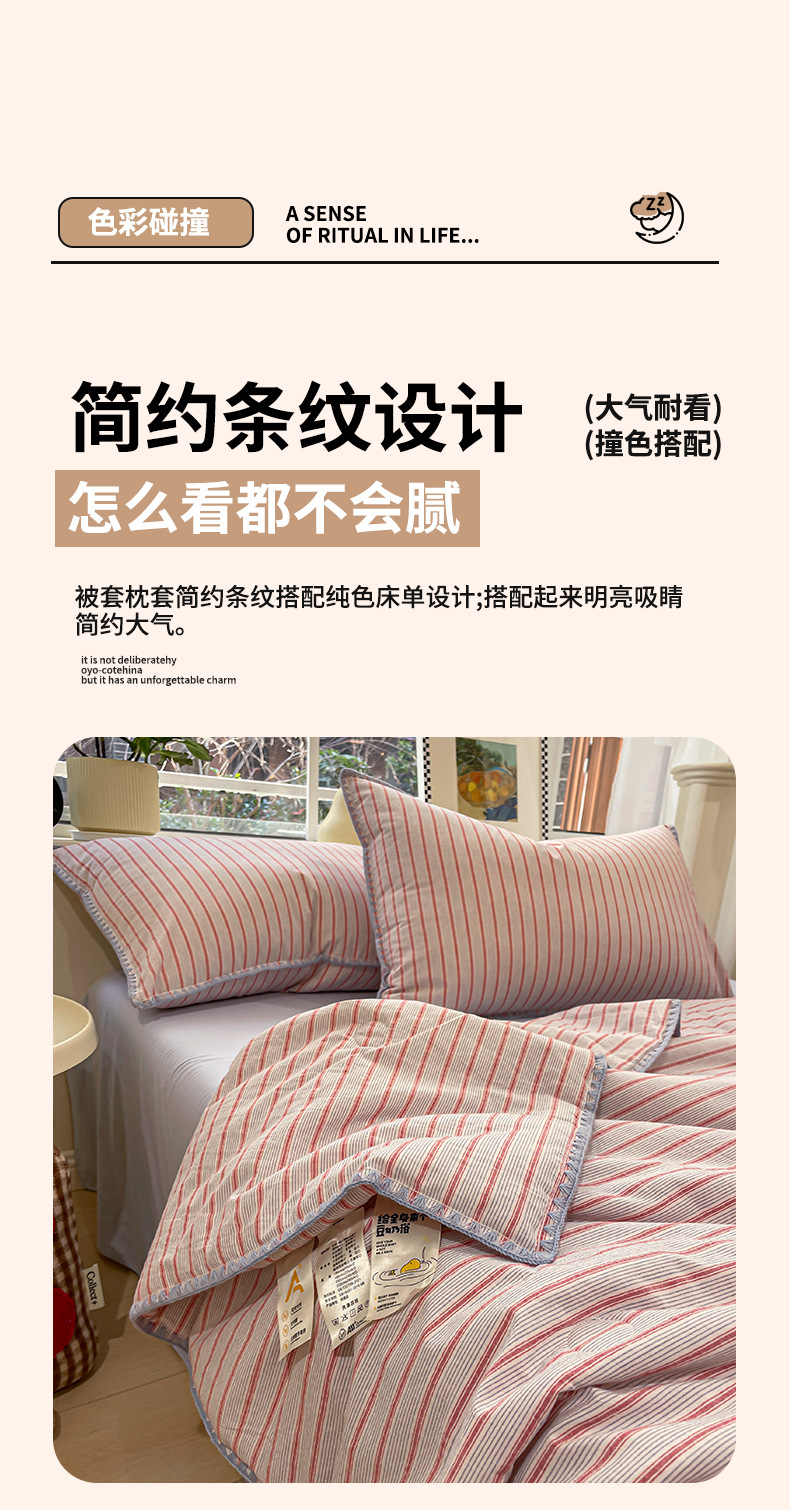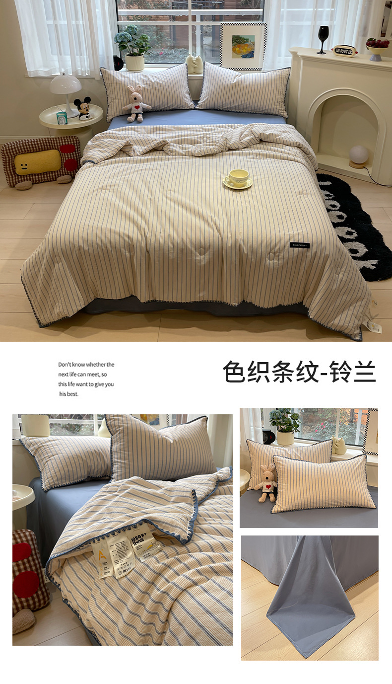 클래스 A 면사 염색 물로 씻은 면화 대두 여름 시원한 이불 4 조각면 간단한 줄무늬 기계-세탁 가능한 에어컨 이불스토어 가기