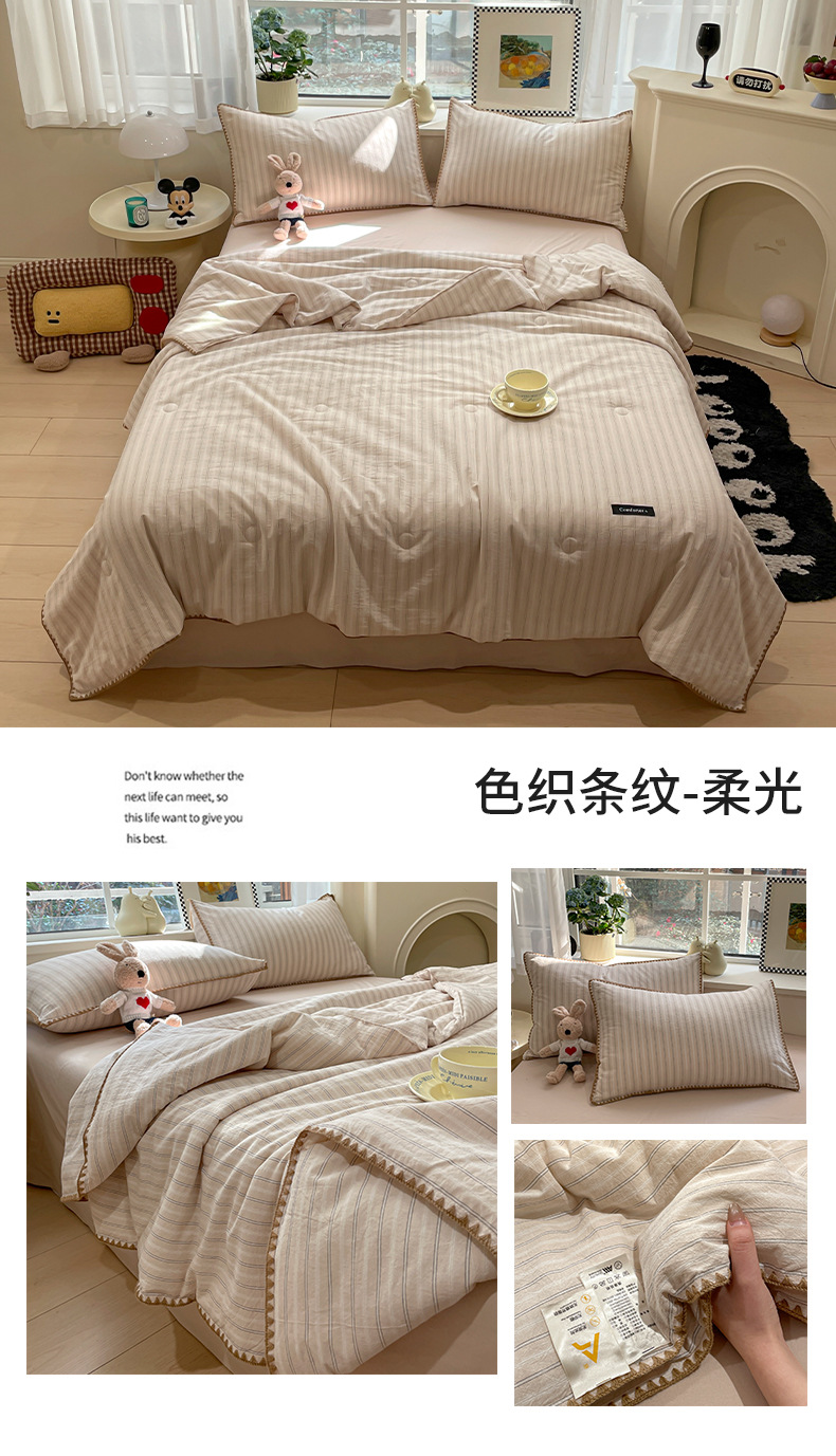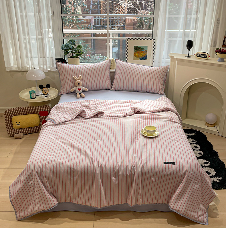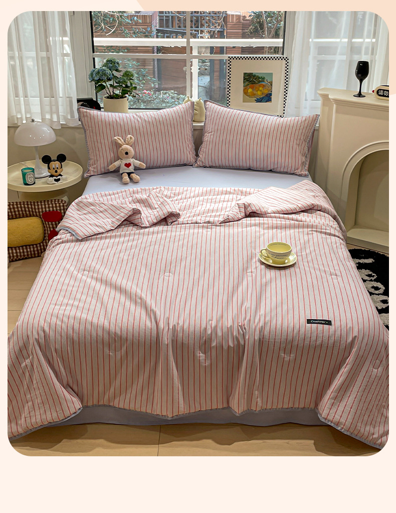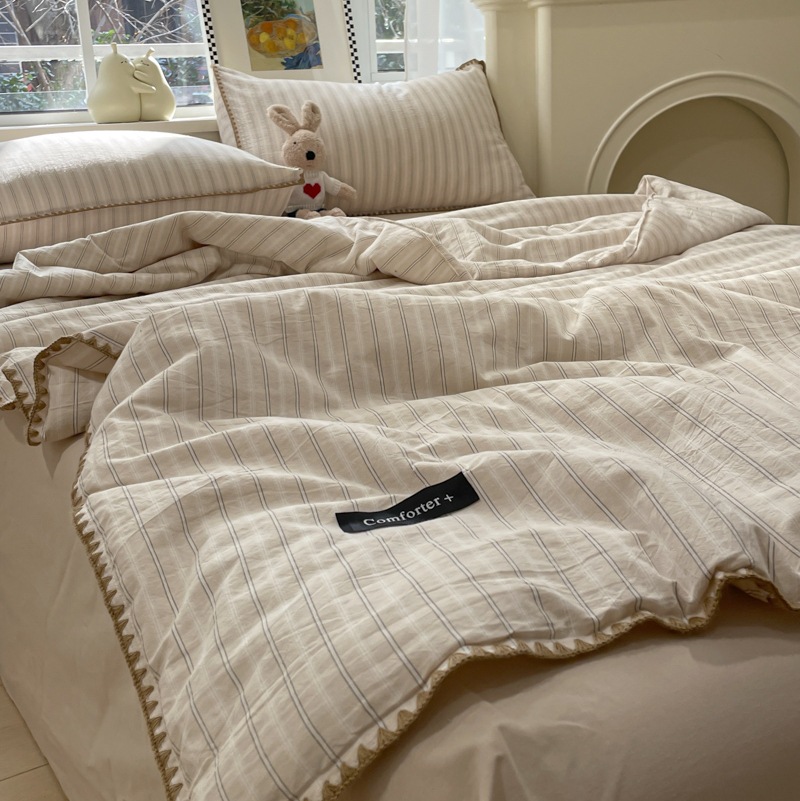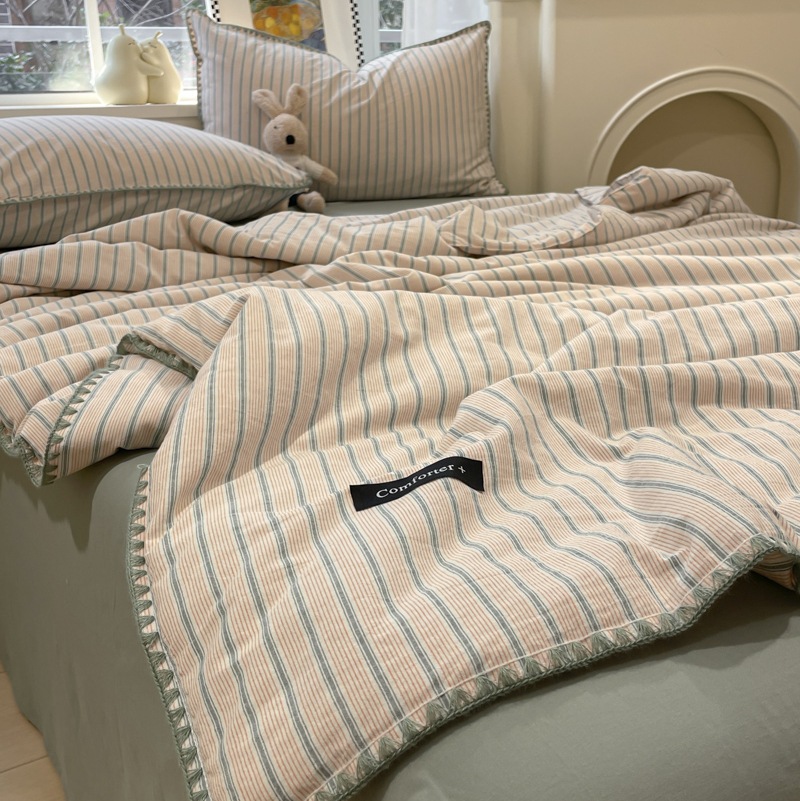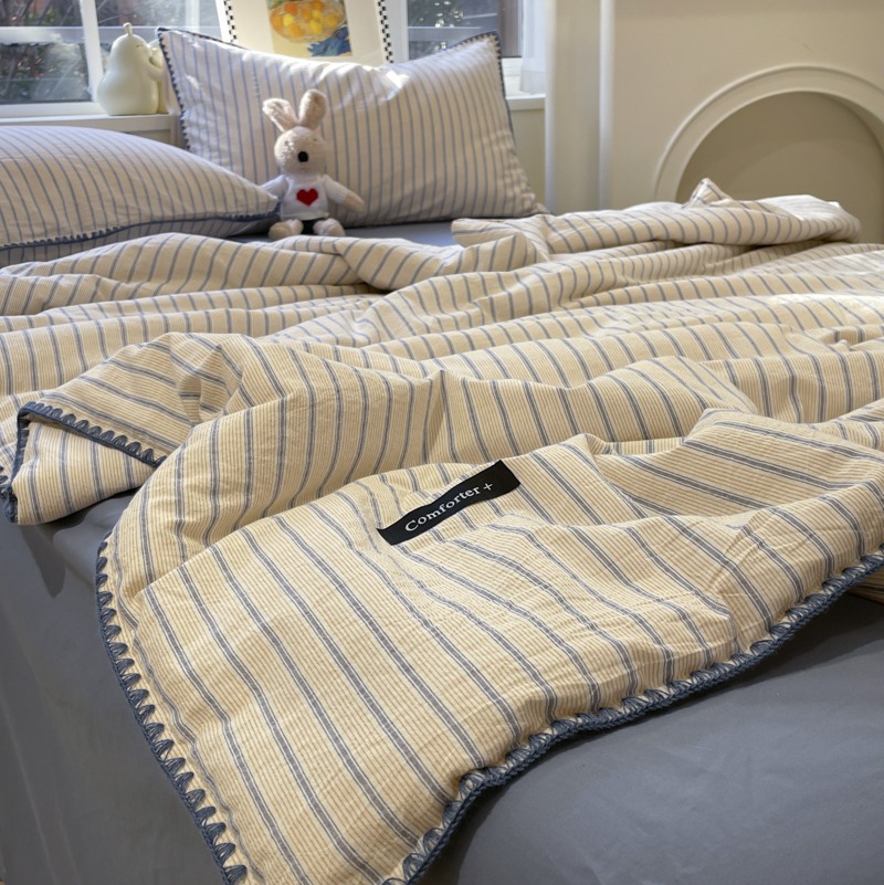 클래스 A 면사 염색 물로 씻은 면화 대두 여름 시원한 이불 4 조각면 간단한 줄무늬 기계-세탁 가능한 에어컨 이불
