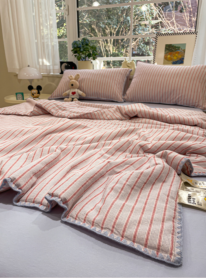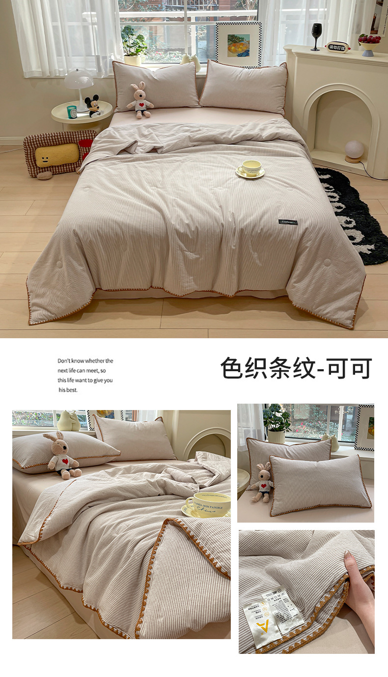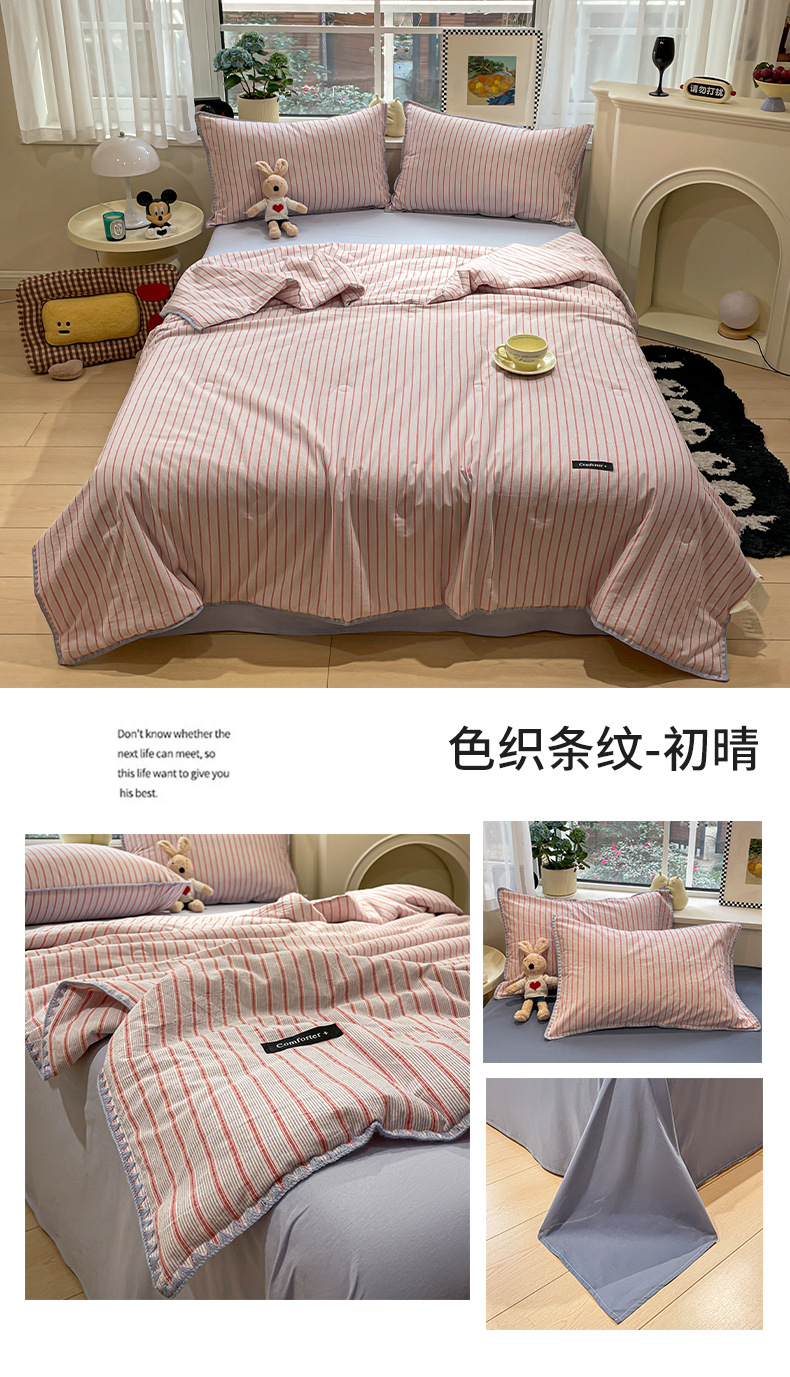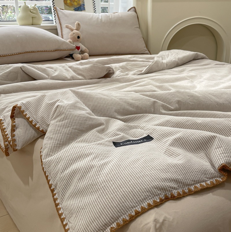 클래스 A 면사 염색 물로 씻은 면화 대두 여름 시원한 이불 4 조각면 간단한 줄무늬 기계-세탁 가능한 에어컨 이불