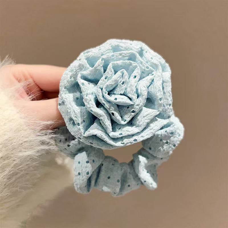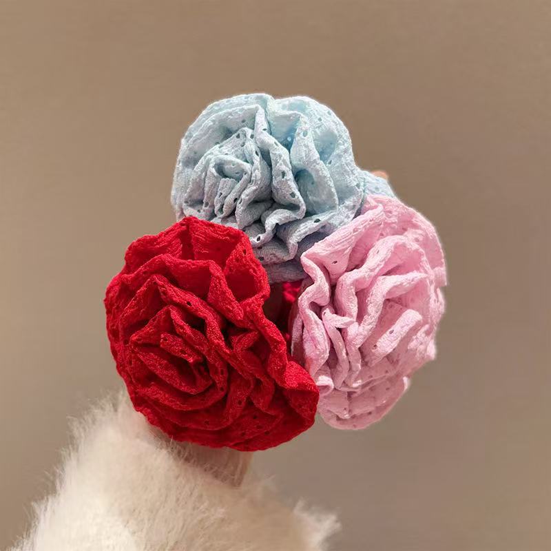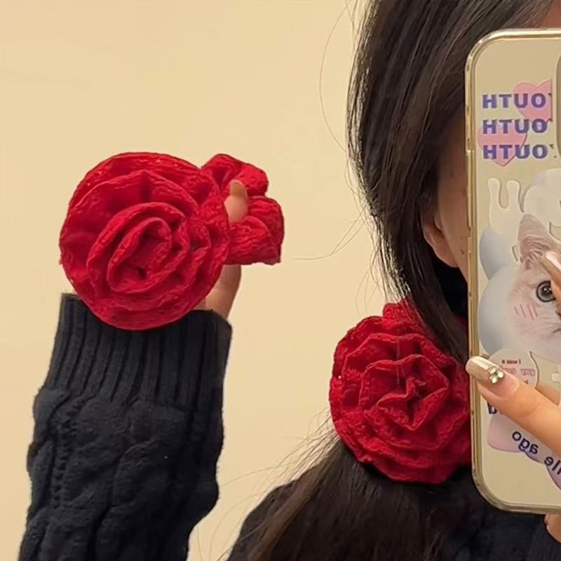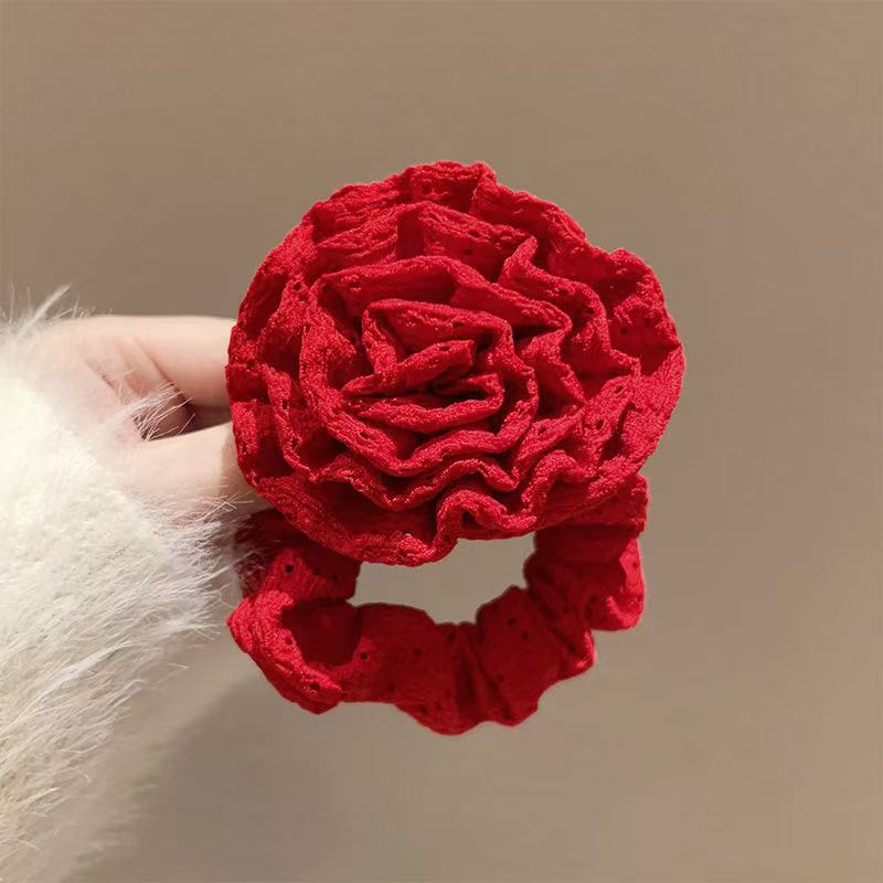 부드러운 흰색 빨간 장미 머리 반지 프랑스 달콤한 3 차원 꽃 큰 그릇 머리 밧줄 새해 머리 밧줄 헤어 액세서리