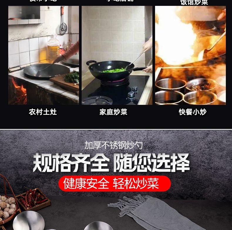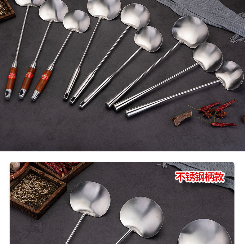 스테인레스 스틸 가정용 주걱 요리 숟가락 특별 요리사 요리 숟가락 구이 저우 긴 손잡이 요리 숟가락 두꺼운 주걱스토어 가기