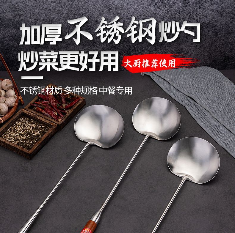 스테인레스 스틸 가정용 주걱 요리 숟가락 특별 요리사 요리 숟가락 구이 저우 긴 손잡이 요리 숟가락 두꺼운 주걱