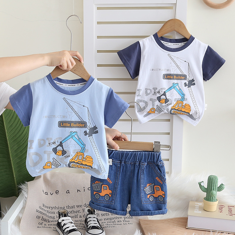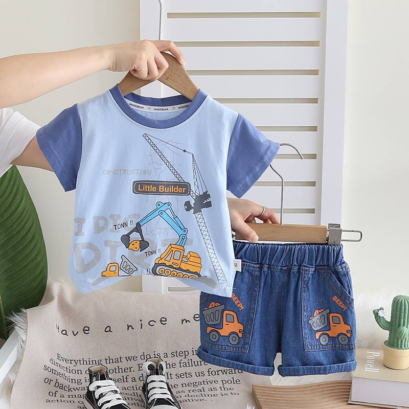 여름새 소년 '한국 아동복 반팔 어린이 세트 청바지 투피스 아동복 여름복'