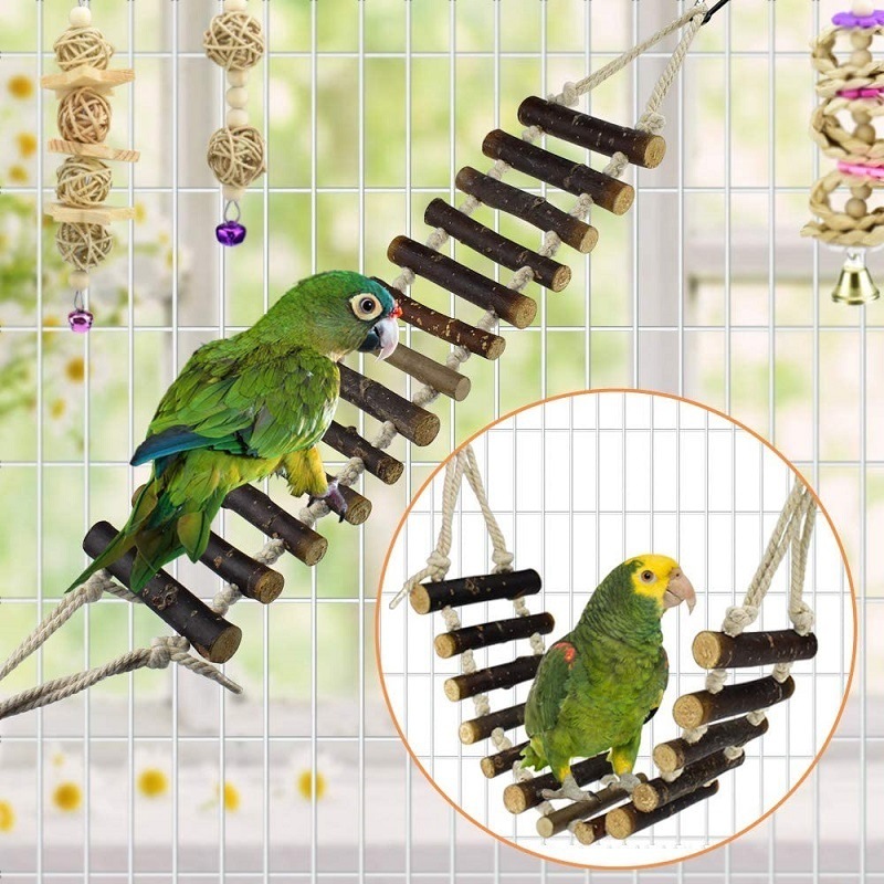앵무새 장난감 그네 1 차 컬러 우드 그나잉 어금니 장난감 찌르레기 새 케이지 펜던트 새 용품 등반 사다리 등반 공스토어 가기