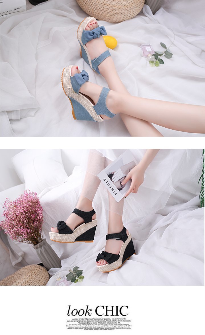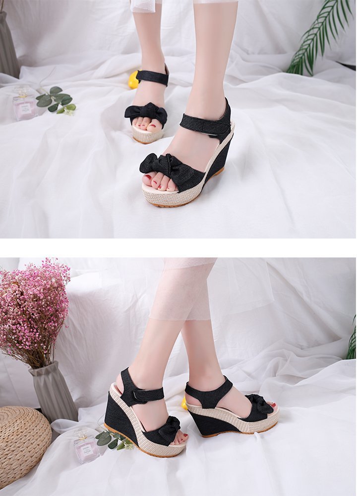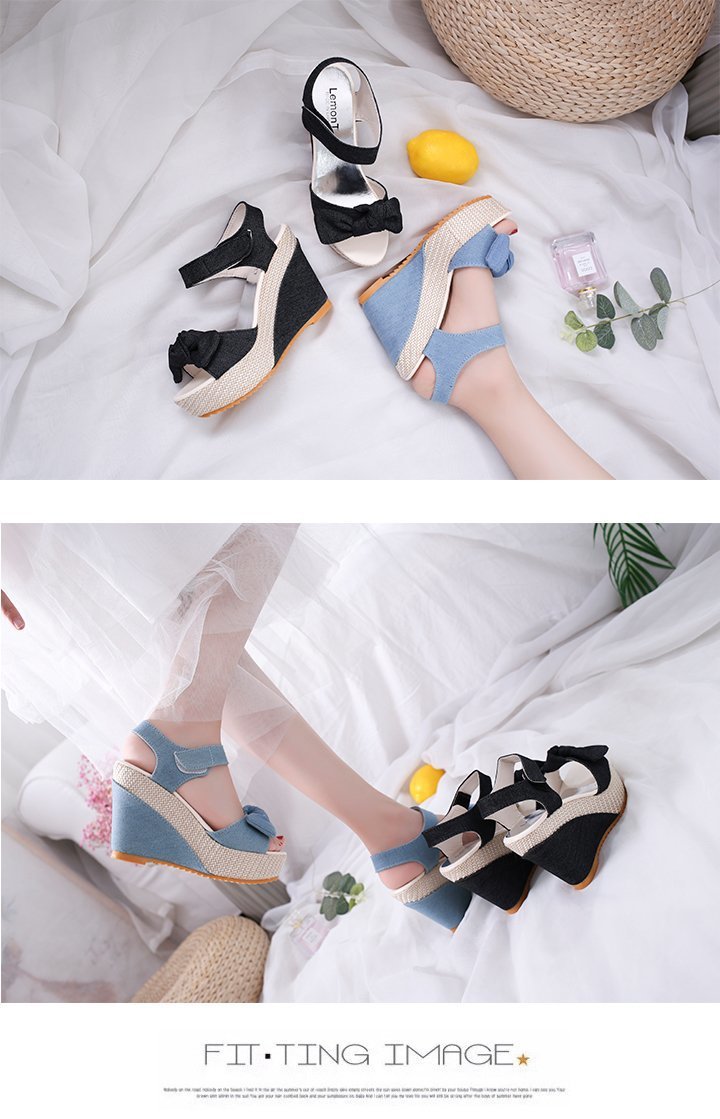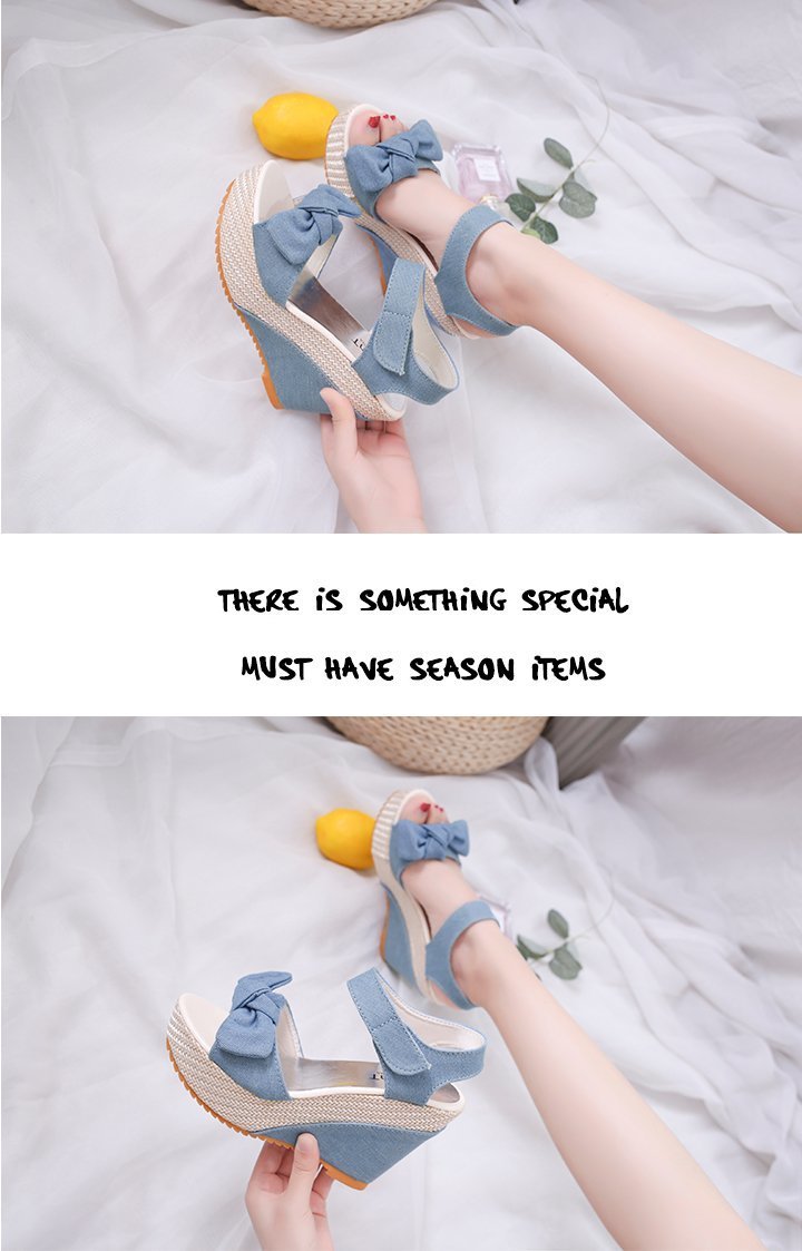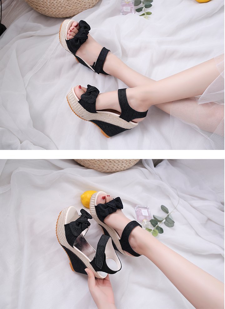 샌들 하이힐 여성용 우아한 한 단어 버클 스위트 보우 웨지 힐 플랫폼 벨크로 생선 입 샌들스토어 가기