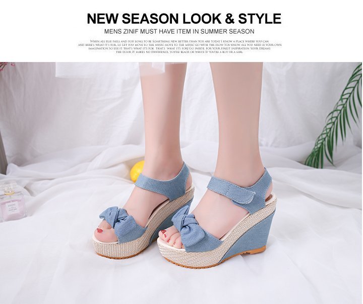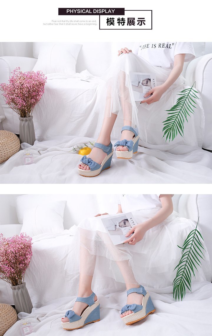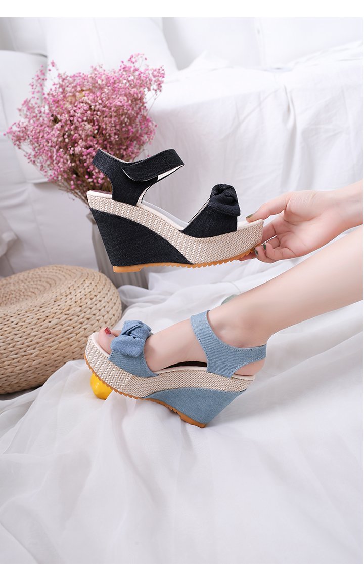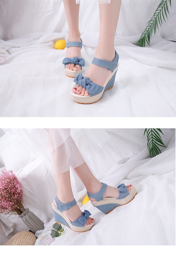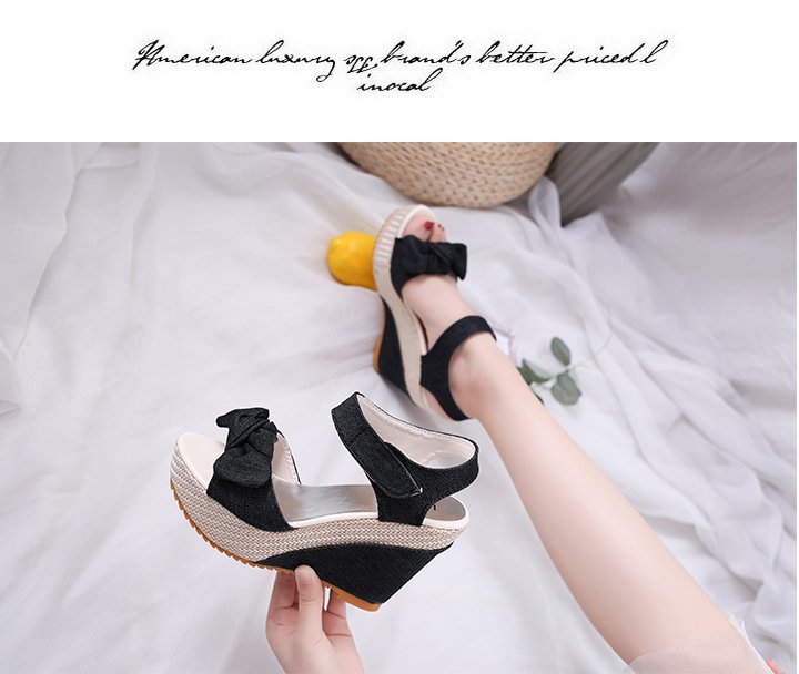 샌들 하이힐 여성용 우아한 한 단어 버클 스위트 보우 웨지 힐 플랫폼 벨크로 생선 입 샌들스토어 가기