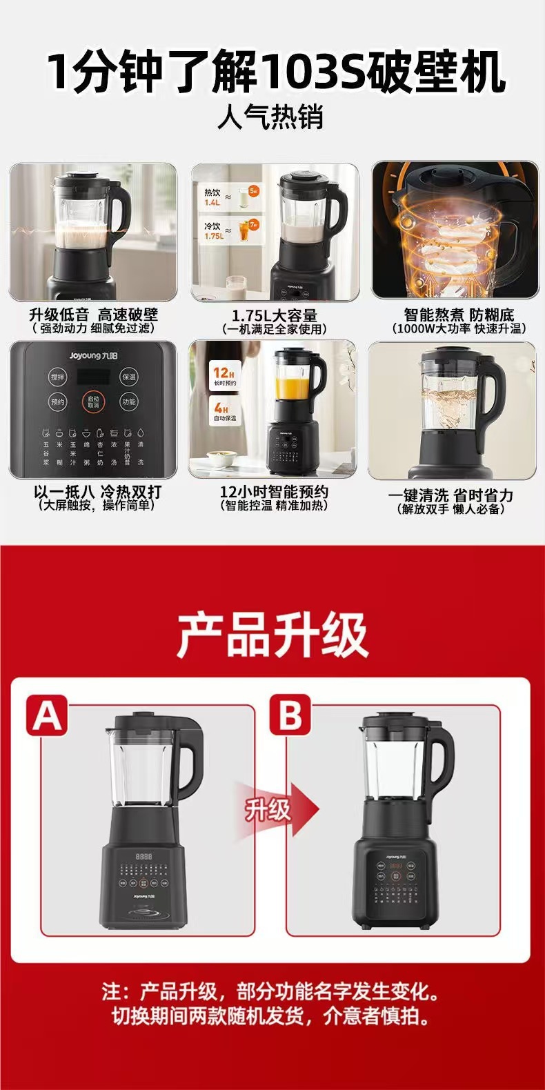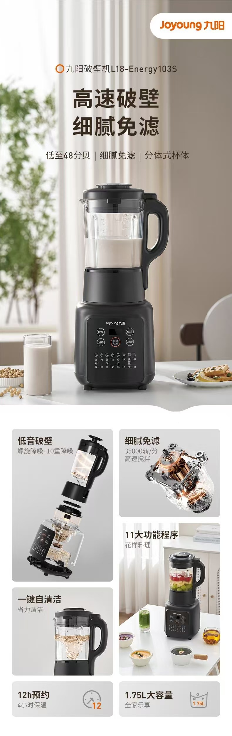 가정용 1.75 리터 대두 우유 기계 가정용 다기능 요리 기계를 L18-Energy103S Jiuyang 벽 속보 기계에 적합스토어 가기