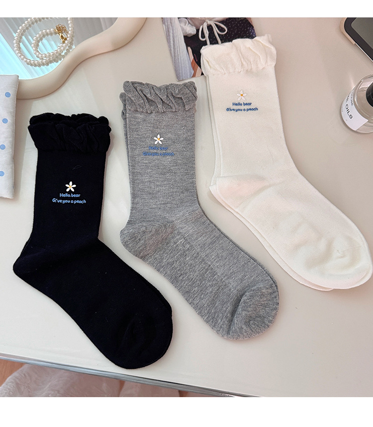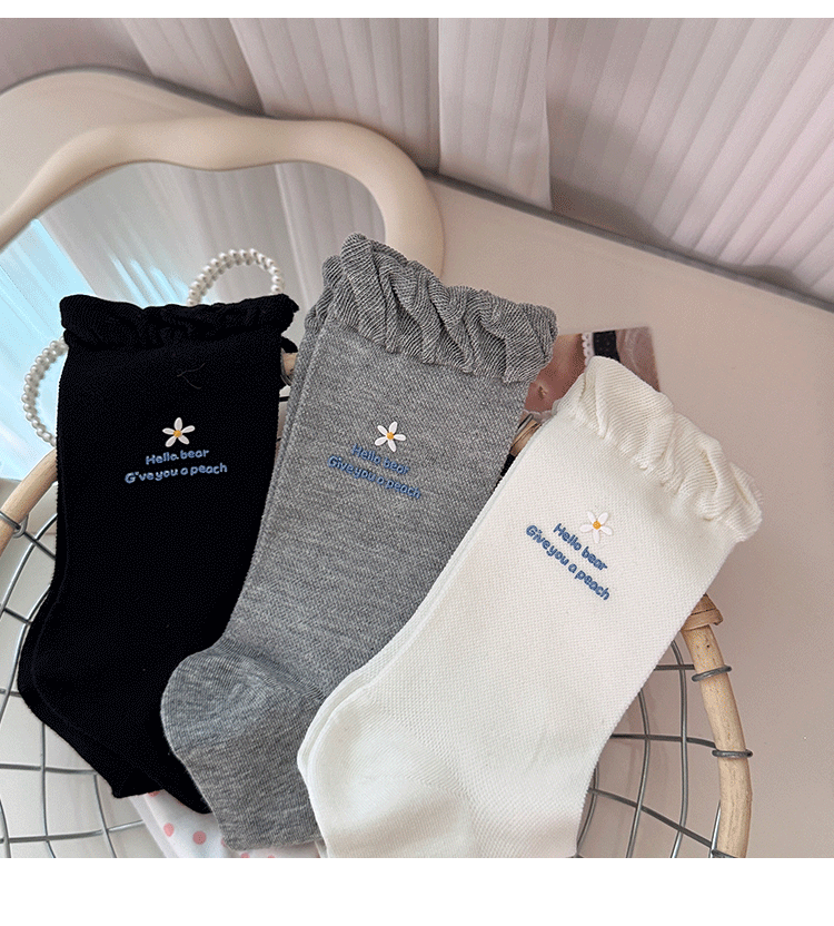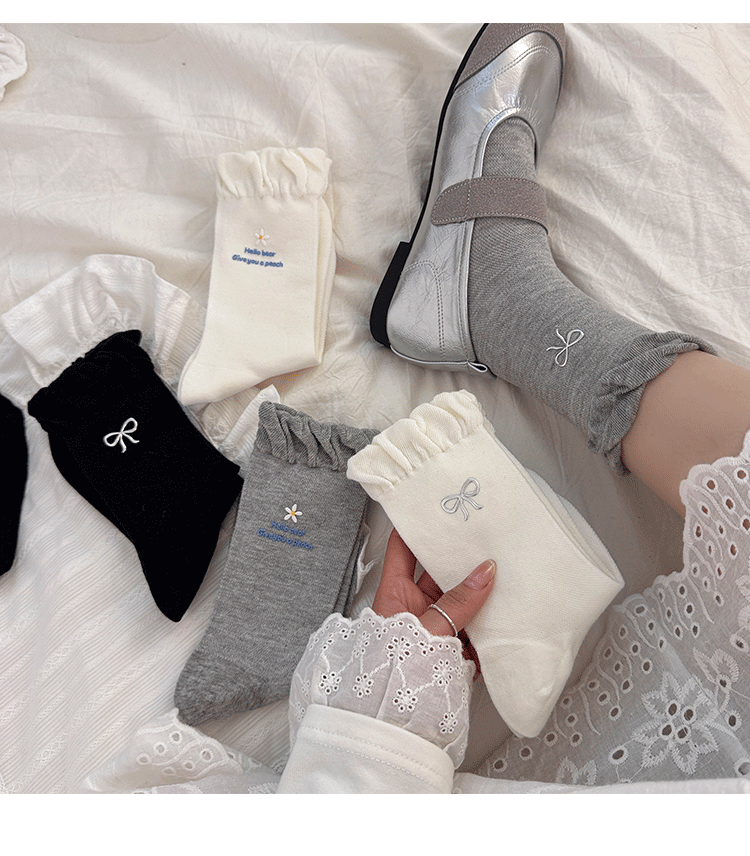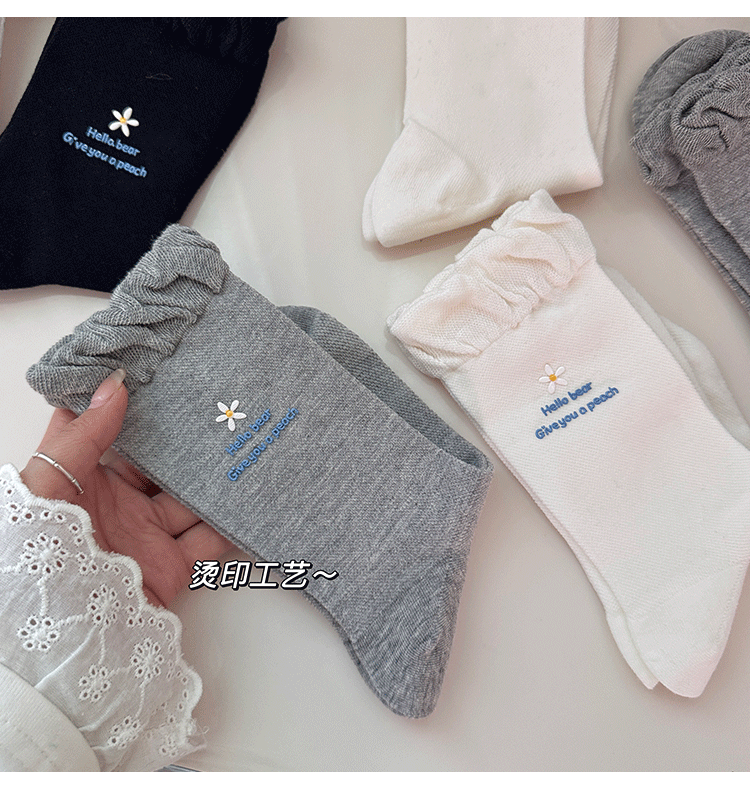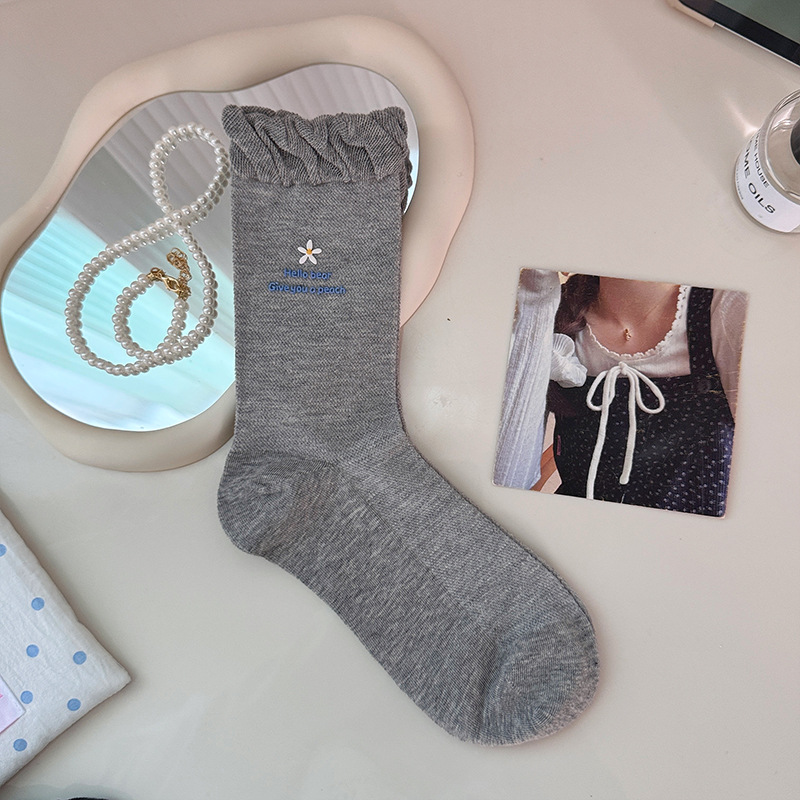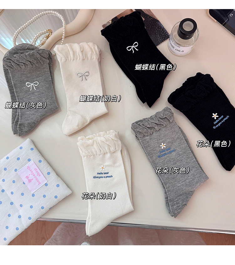 핫 스탬핑 보우 레이스 뼈없는 양말 여성용 미드 튜브 양말 봄과 여름 새로운 얇은 레이스 메쉬 한국식 스택 양말