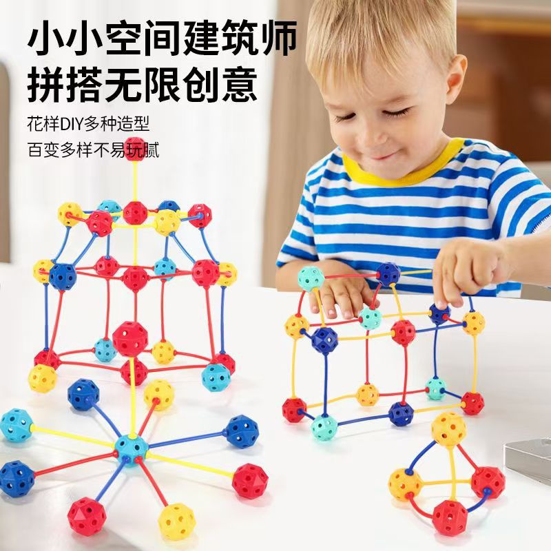 유치원 다양한 구슬 빌딩 블록 장난감 3-6 세 지적 발달 구형 스틱 도트 라인 입체 기하학 건물스토어 가기