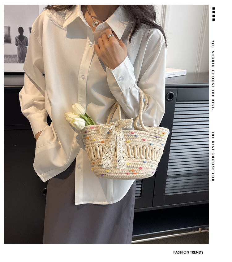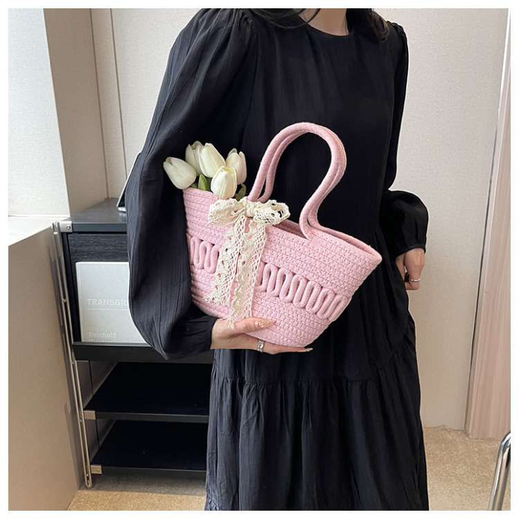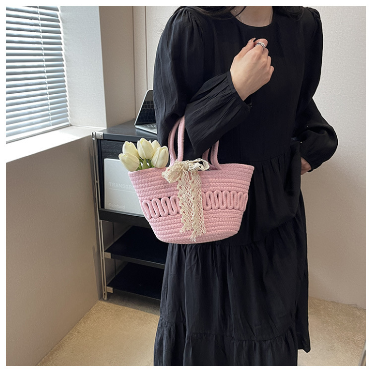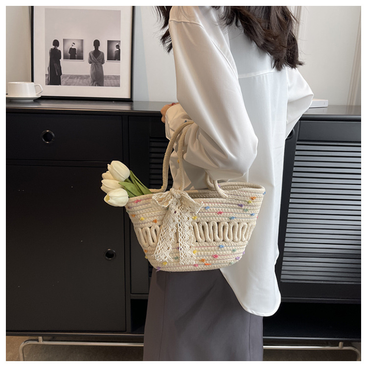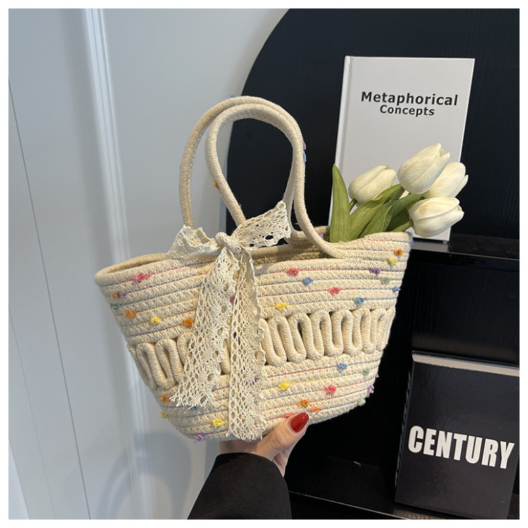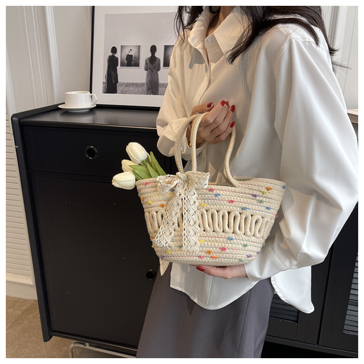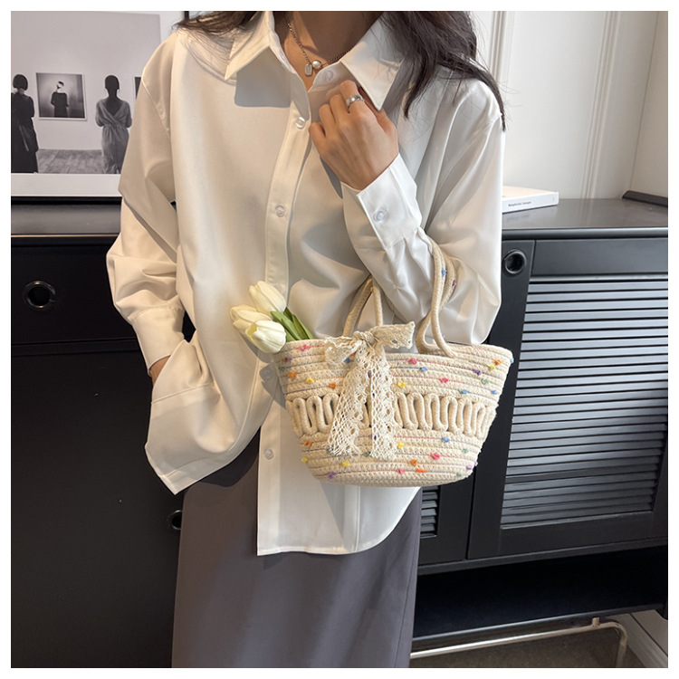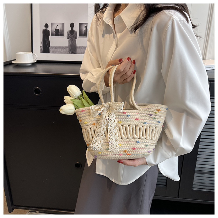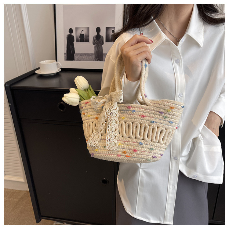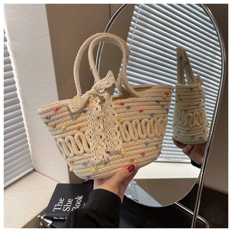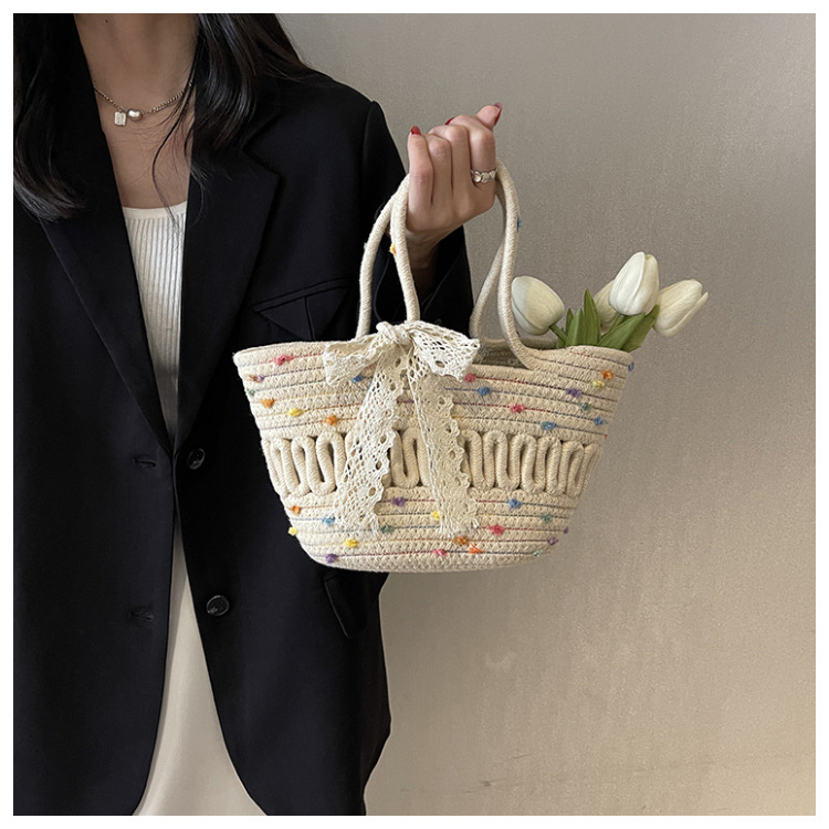 손으로 짠 밀짚 가방 여성용 2026 신상 바구니 가방 여성 패션 인스 스타일 등나무 해변 가방 토트백