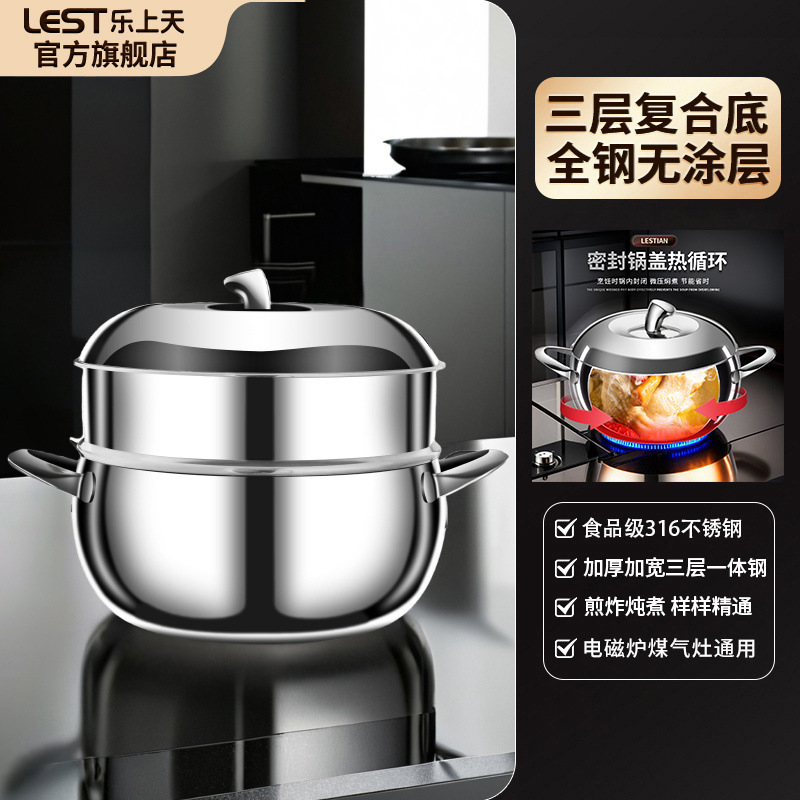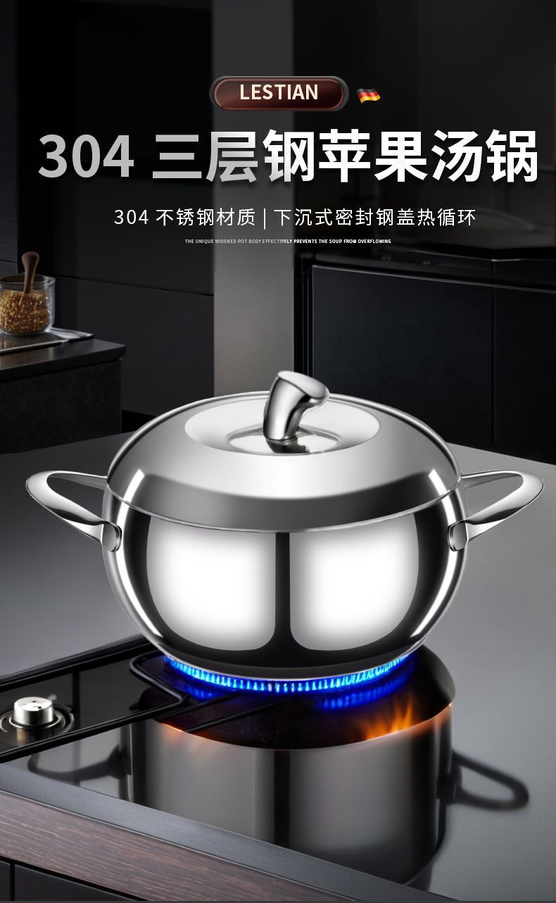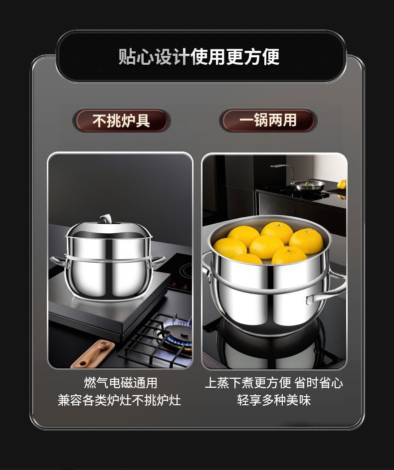 2025316 스테인레스 스틸 식품 등급 사과 수프 냄비 가정용 304 더블 레이어 기선 두꺼운 유도 쿠커 대용량 벨트스토어 가기