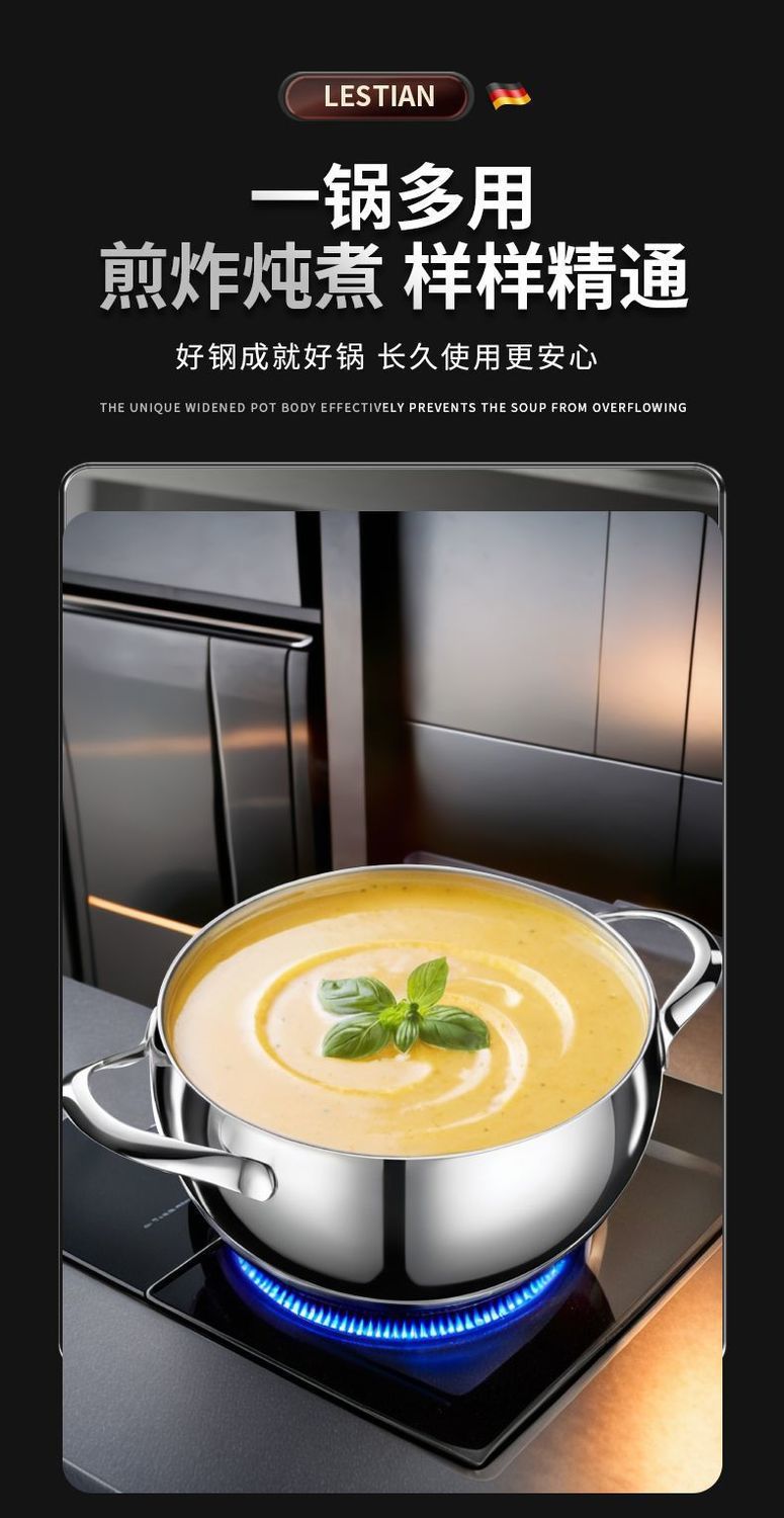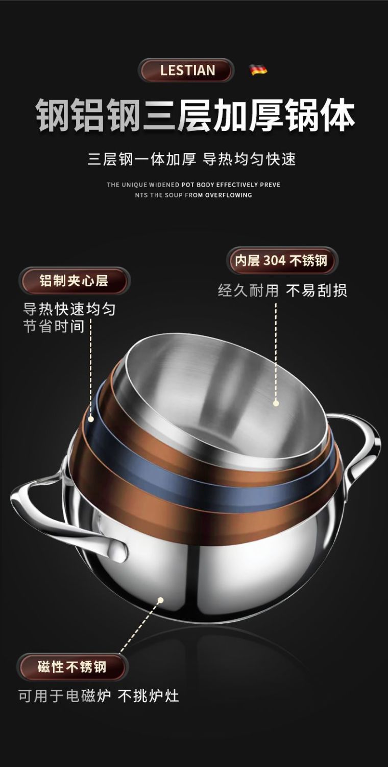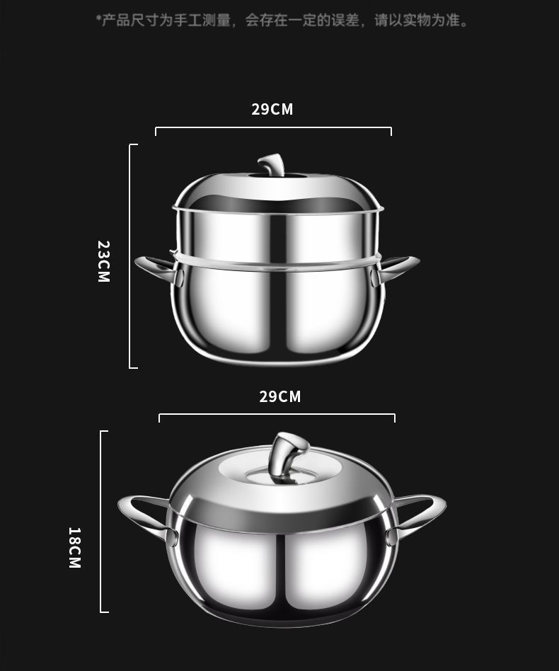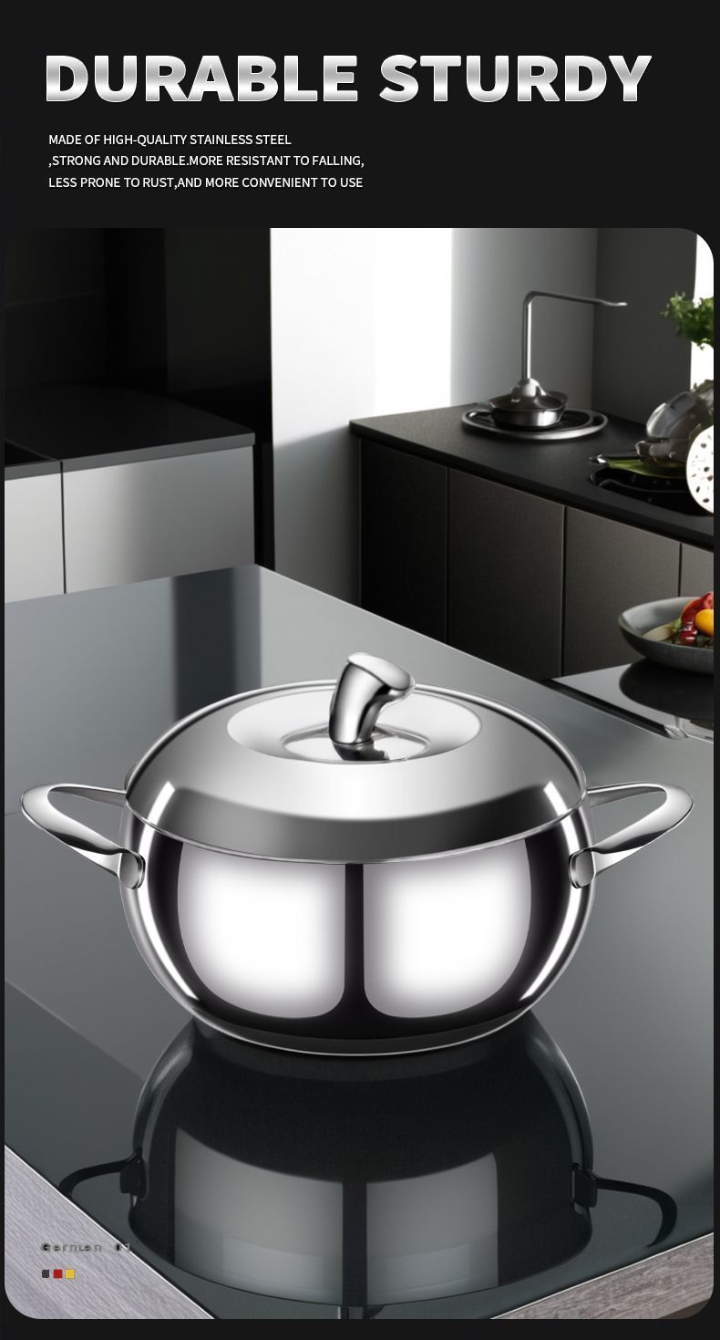 2025316 스테인레스 스틸 식품 등급 사과 수프 냄비 가정용 304 더블 레이어 기선 두꺼운 유도 쿠커 대용량 벨트