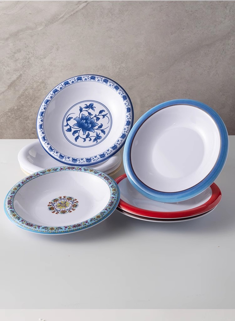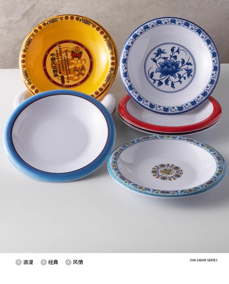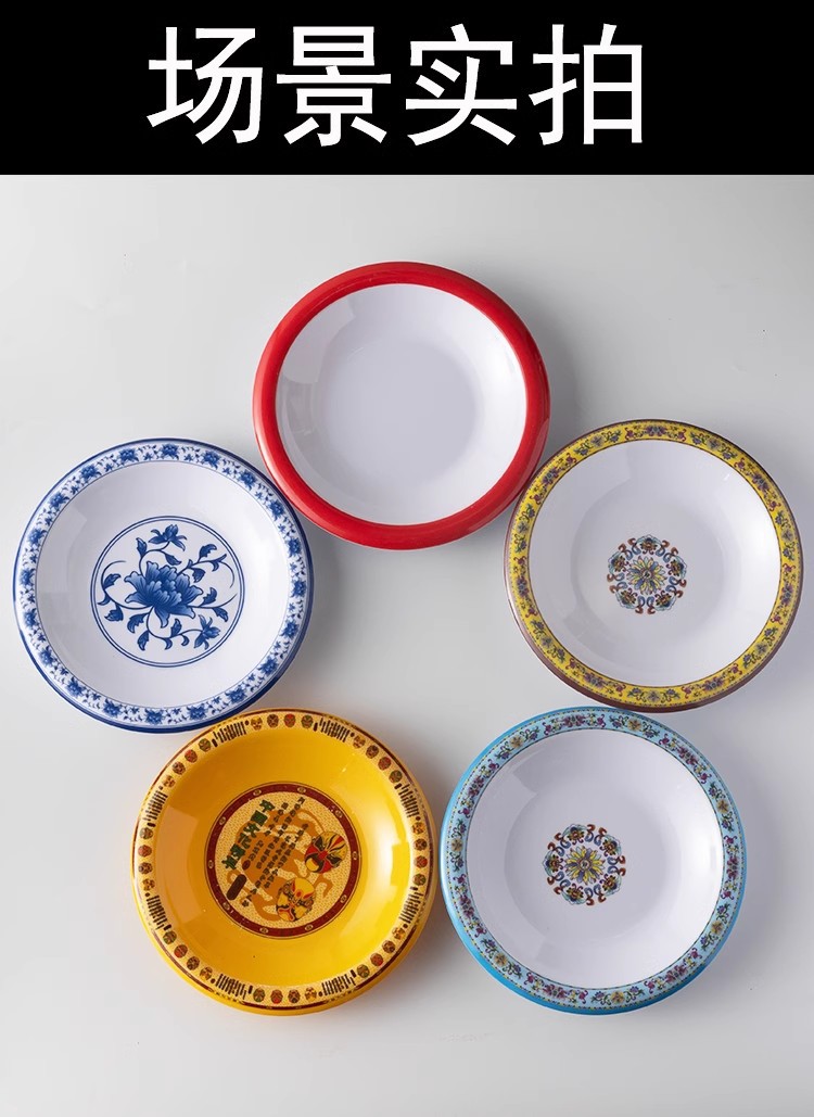 멜라민 식기 도자기 둥근 카운터 플레이트 플라스틱 가재 접시 국수 돼지 발 쌀 작은 튀긴 고기 차가운 요리