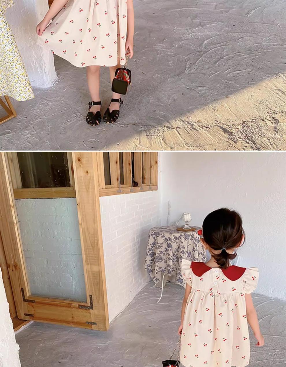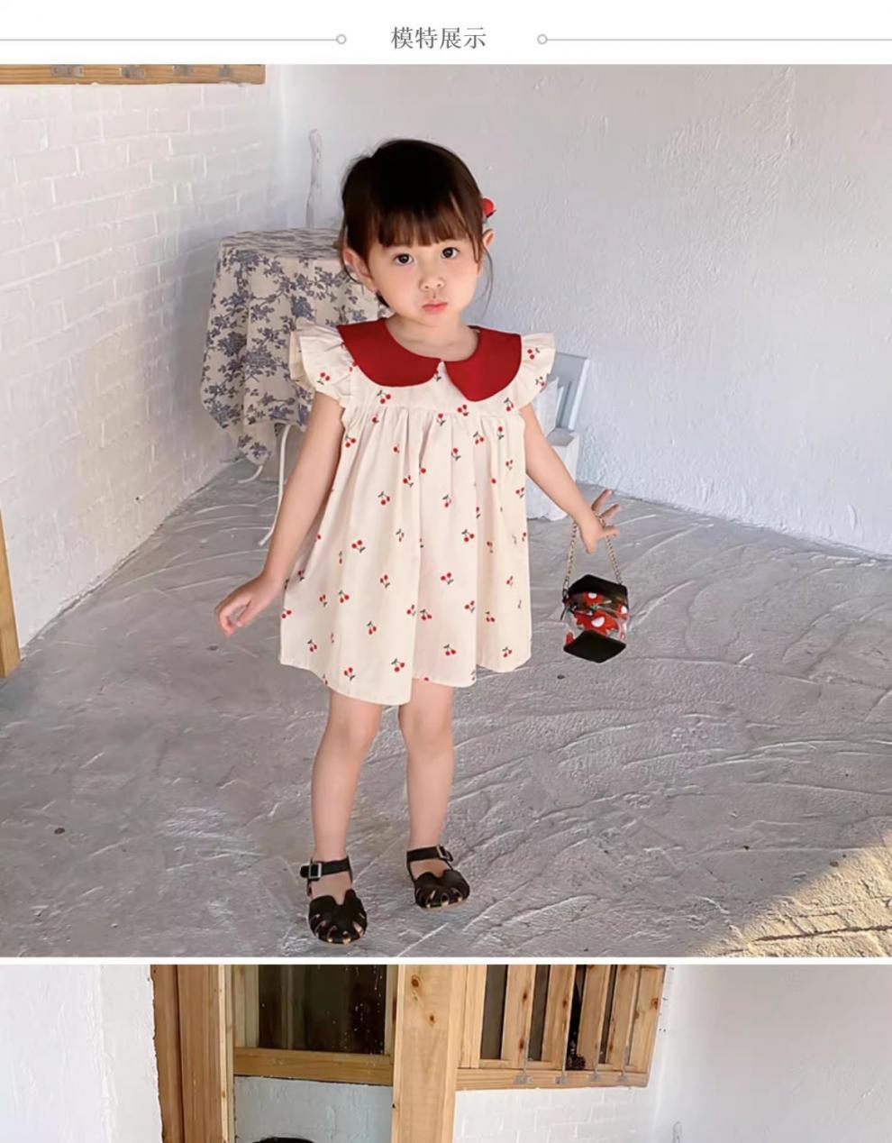 2025 여름 체리 원피스 얇은 소녀 아기 공주 인형 원피스 아기 소녀 짧은 소매 아기 원피스 어린이 트렌디스토어 가기
