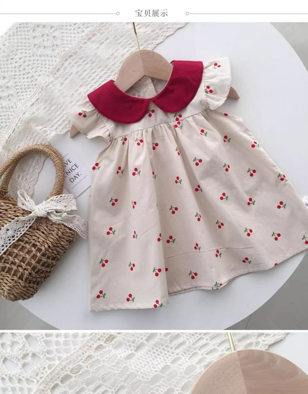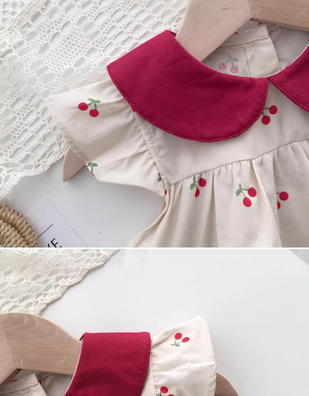 2025 여름 체리 원피스 얇은 소녀 아기 공주 인형 원피스 아기 소녀 짧은 소매 아기 원피스 어린이 트렌디