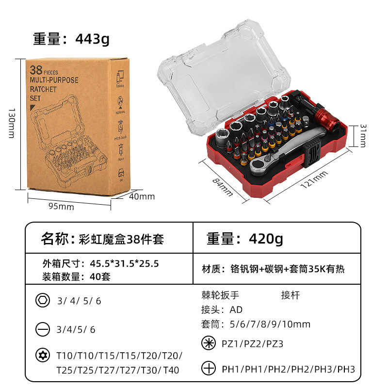 원산지 공장 38종 다기능 드라이버 세트, 정밀 비트 및 소켓 조합, 가정 및 산업용 수리 도구스토어 가기