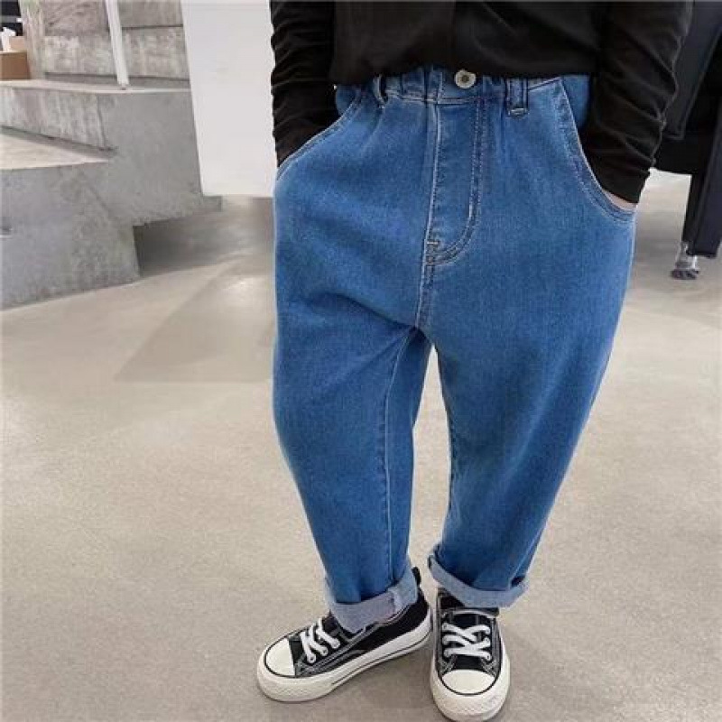 소녀 스트레치 부드러운 청바지 봄과 가을 새로운 도착 소년 Harlan Jeans 순무 아빠 바지 연기 파이프 아우터 착용