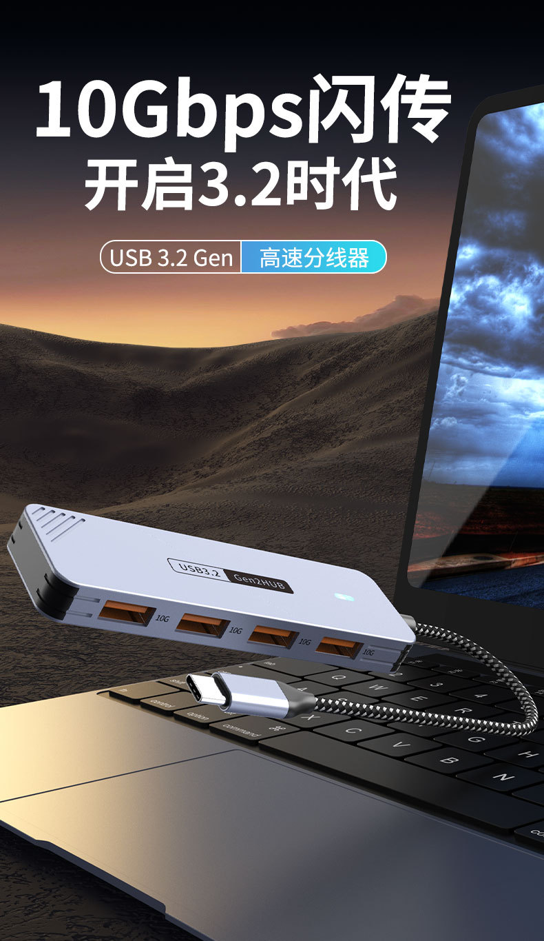 Type-C 전원 공급 장치 USB 허브를 갖춘 인기 있는 type-c3.2 분배기 10G 고속 허브 확장기스토어 가기