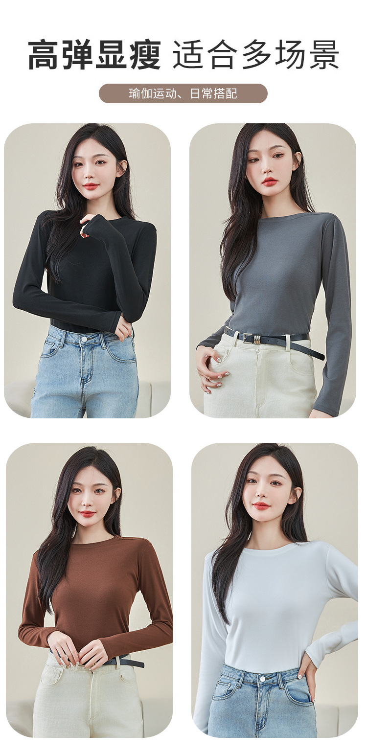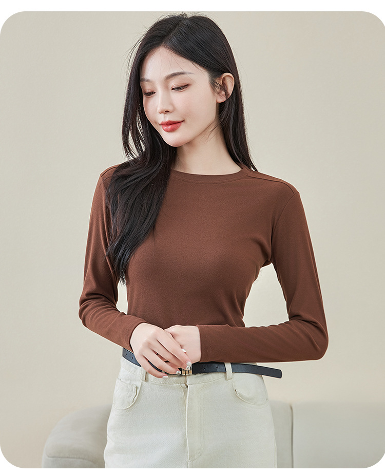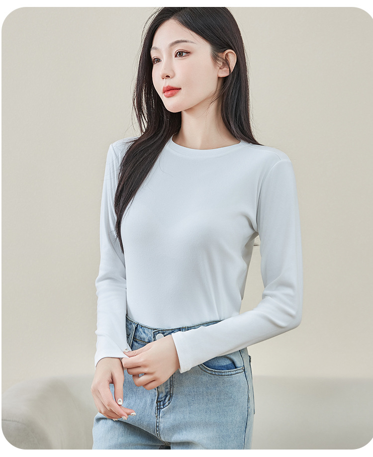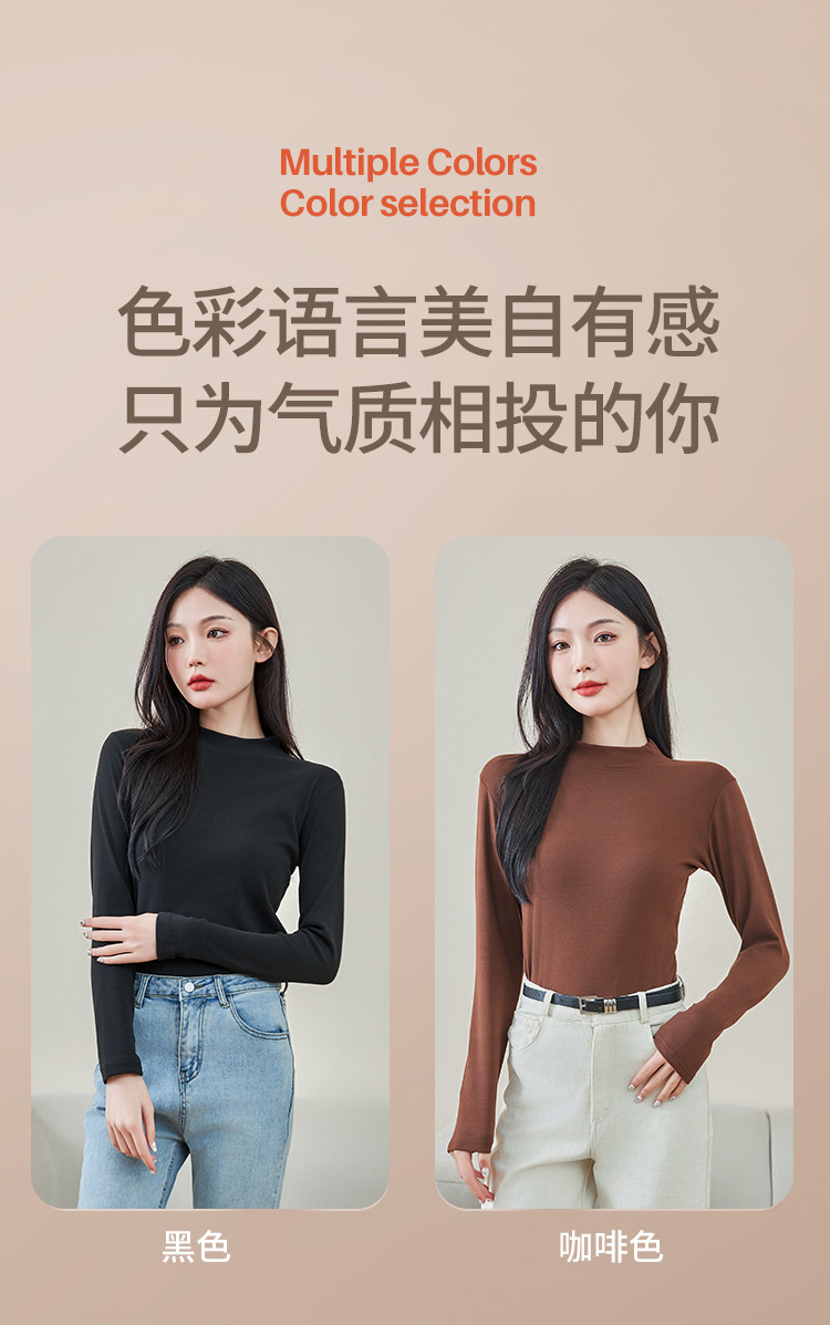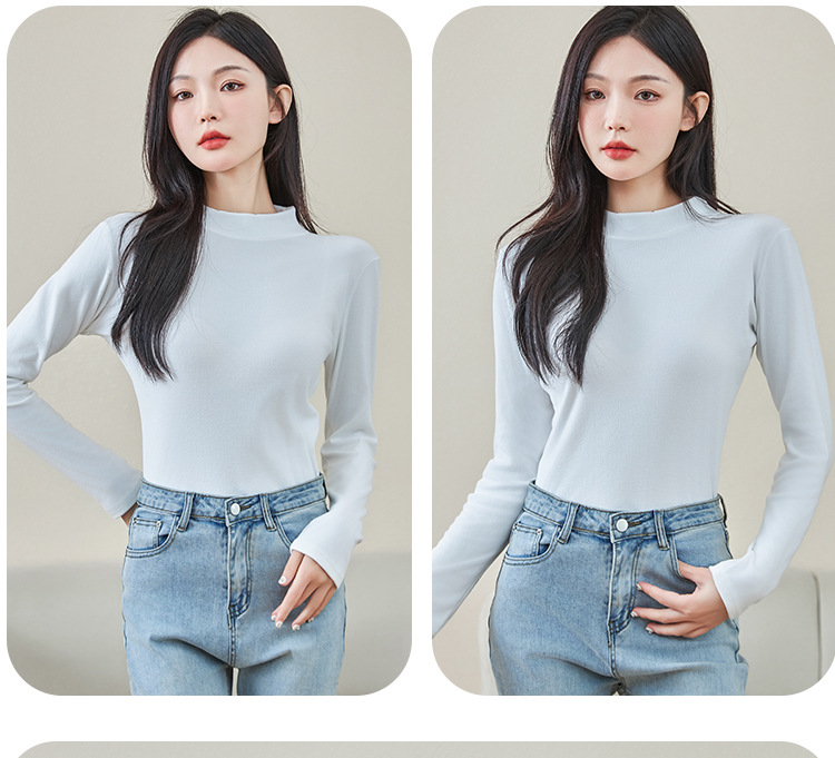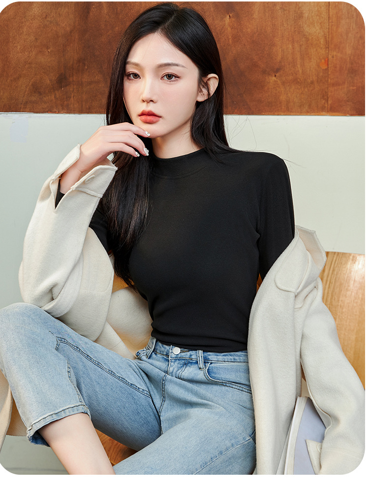 로즈 에센셜 오일 여성용 라운드 넥 바닥 셔츠 가을, 겨울 양면 기모 하프 터틀넥 미드 칼라 따뜻한 탑 긴팔 티셔츠스토어 가기