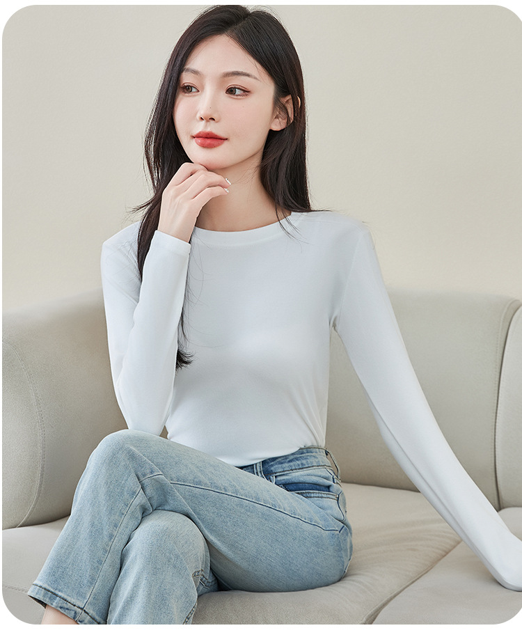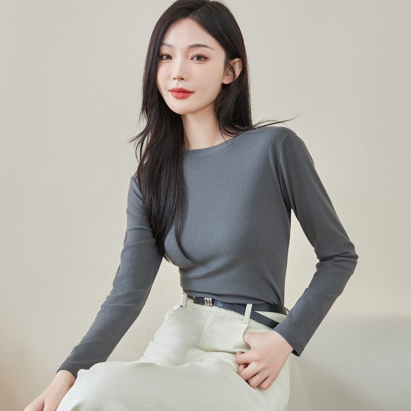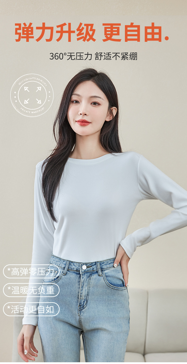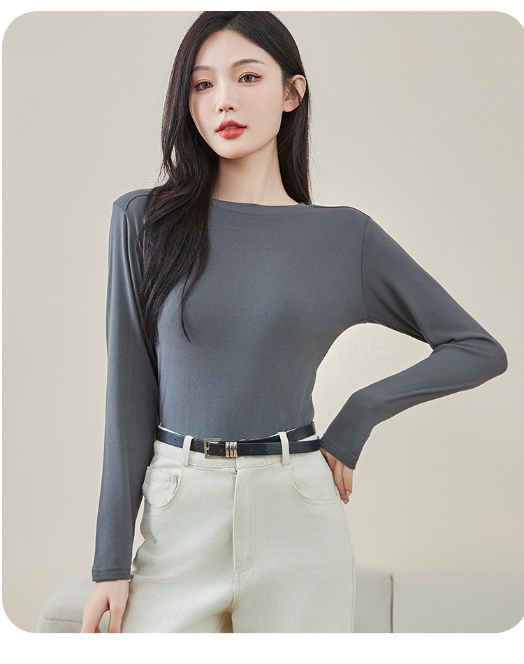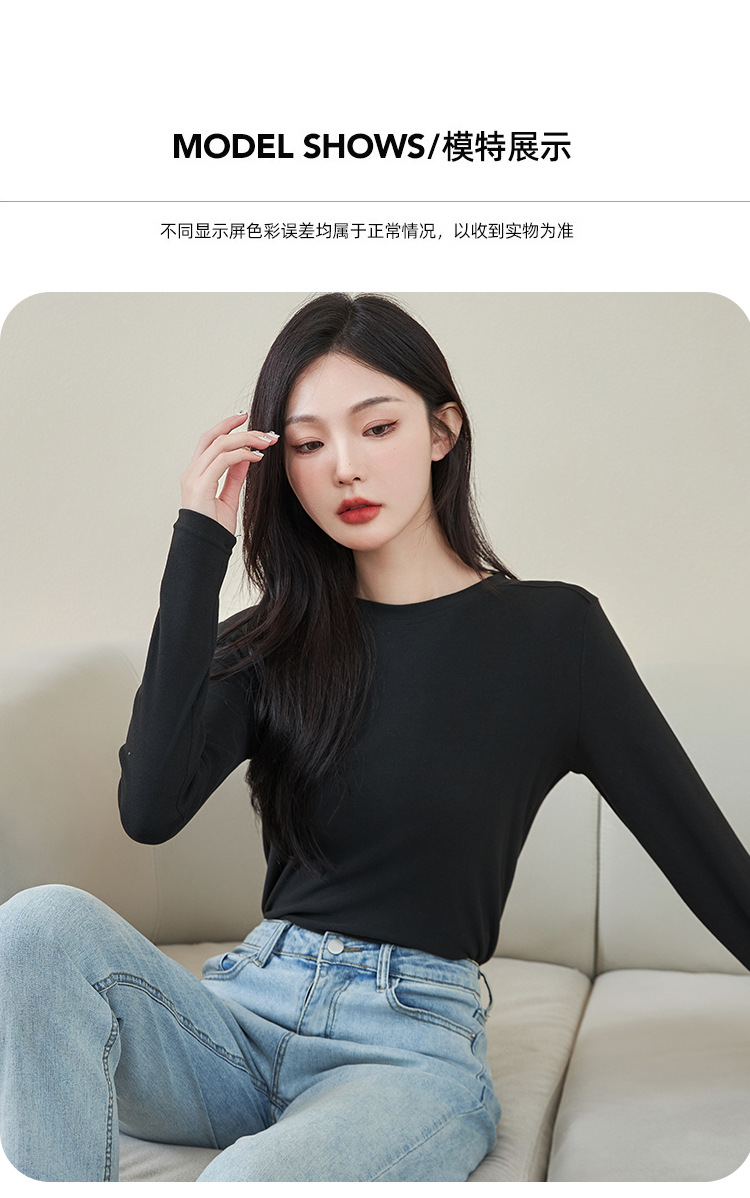 로즈 에센셜 오일 여성용 라운드 넥 바닥 셔츠 가을, 겨울 양면 기모 하프 터틀넥 미드 칼라 따뜻한 탑 긴팔 티셔츠스토어 가기