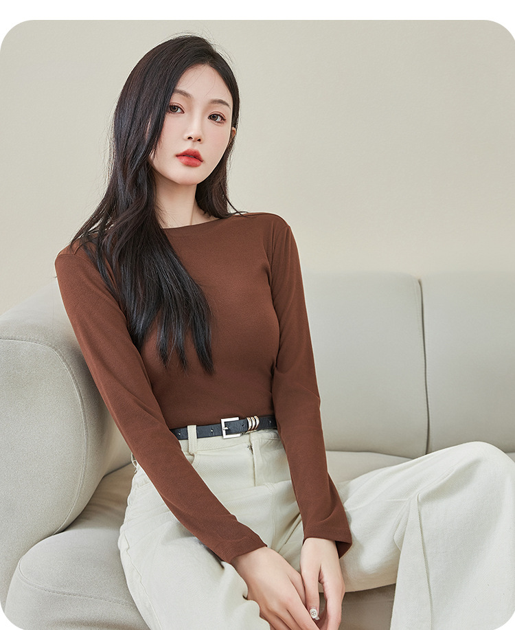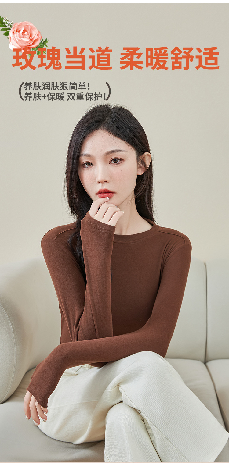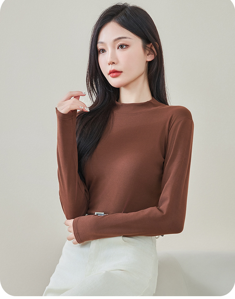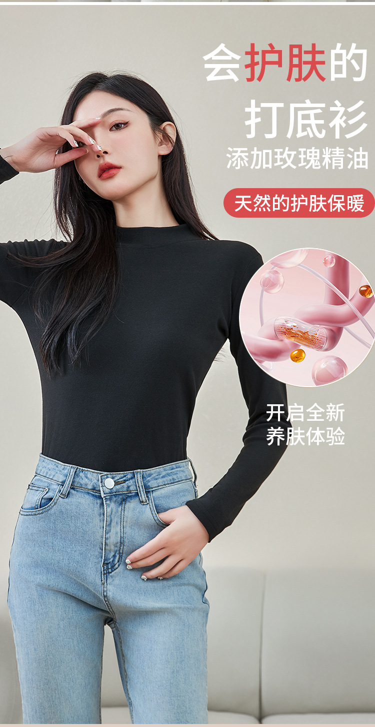 로즈 에센셜 오일 여성용 라운드 넥 바닥 셔츠 가을, 겨울 양면 기모 하프 터틀넥 미드 칼라 따뜻한 탑 긴팔 티셔츠