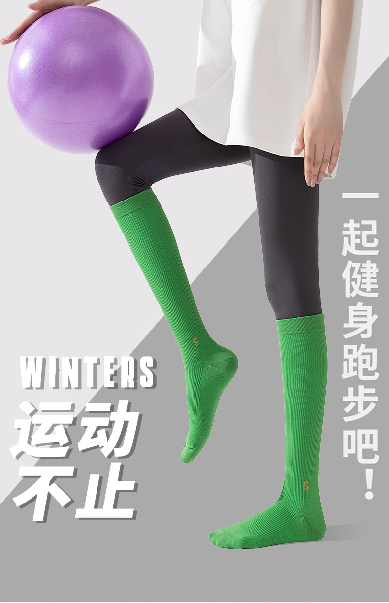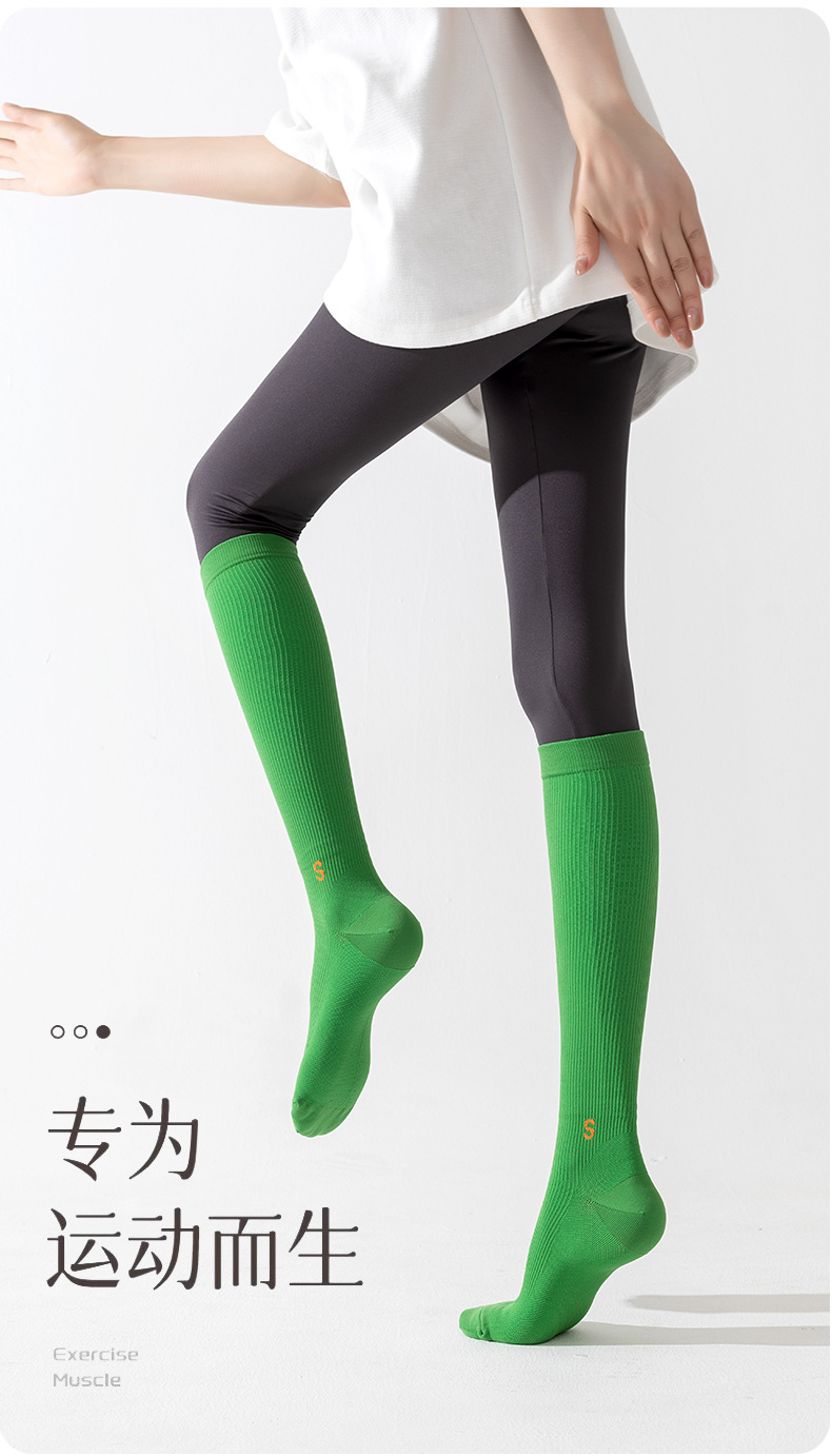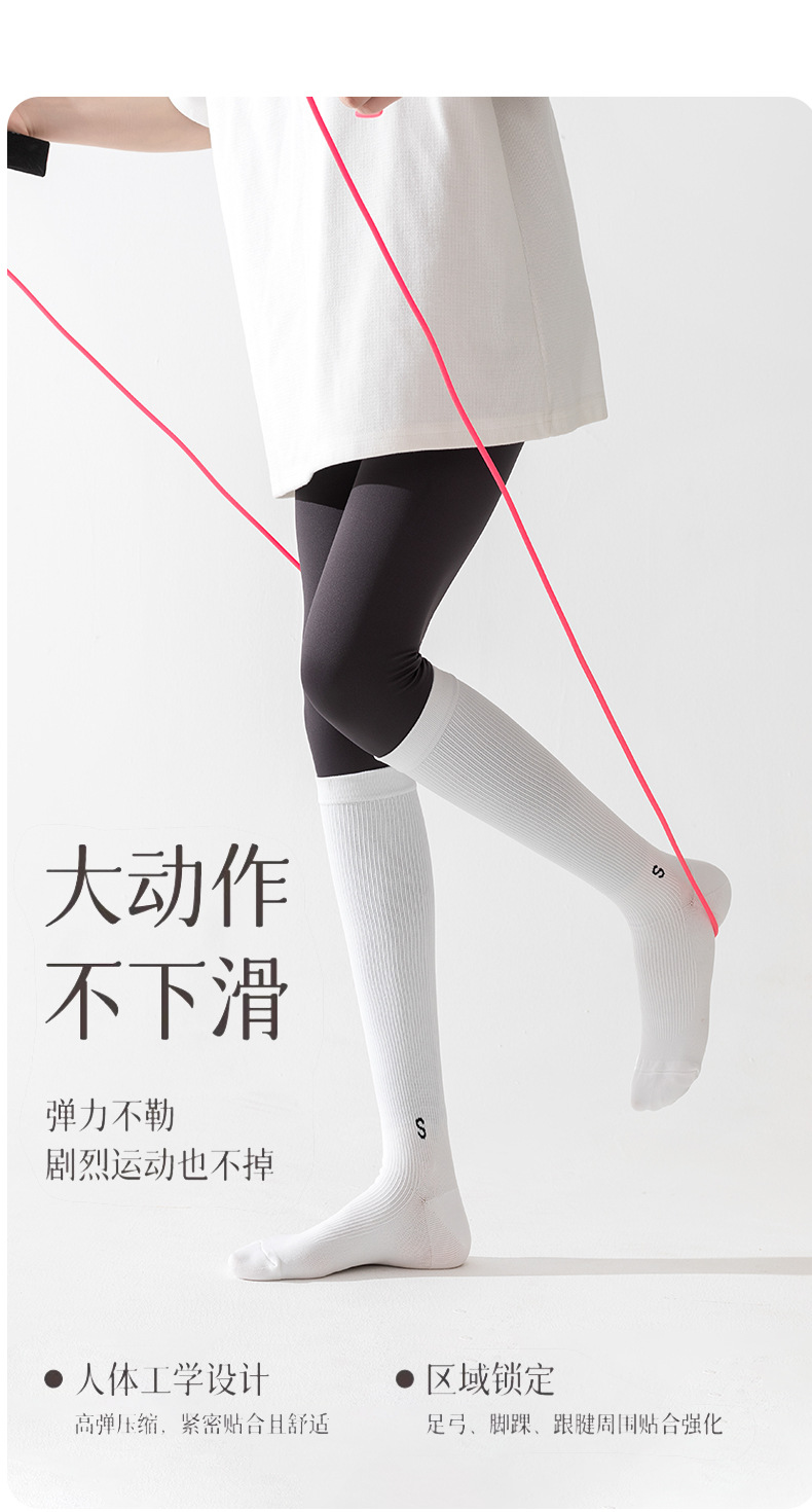 압력 종아리 양말 여성의 봄과 가을 미끄럼 방지 전문 피트니스 운동 긴 튜브 근육 압축 양말 얇은 다리 로프 건너 뛰기 양말스토어 가기