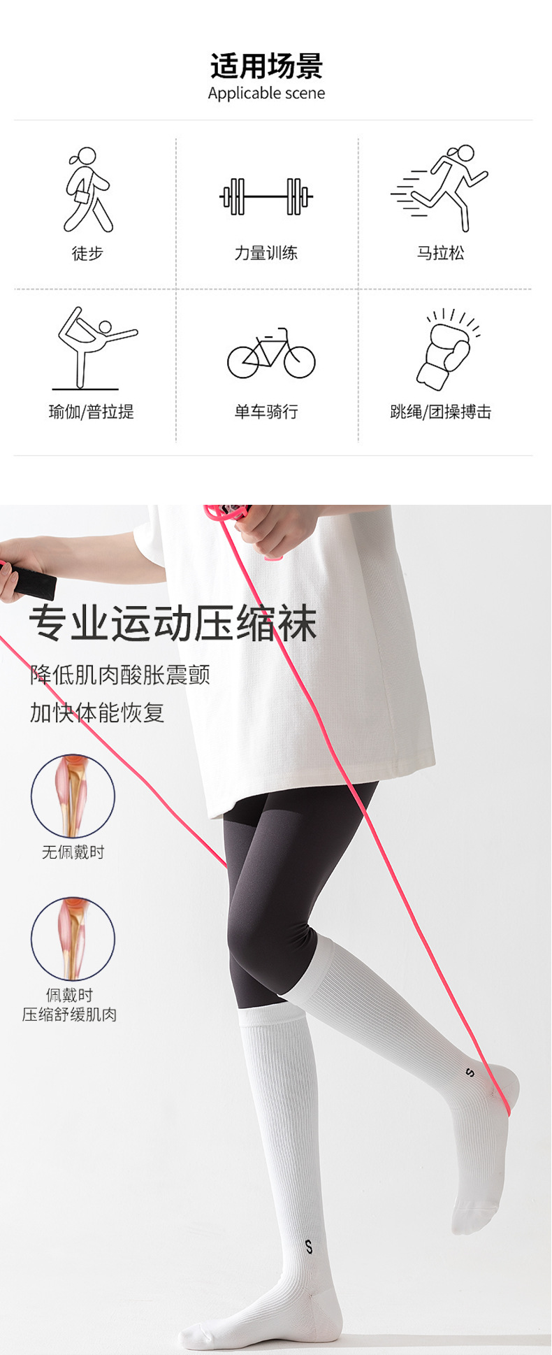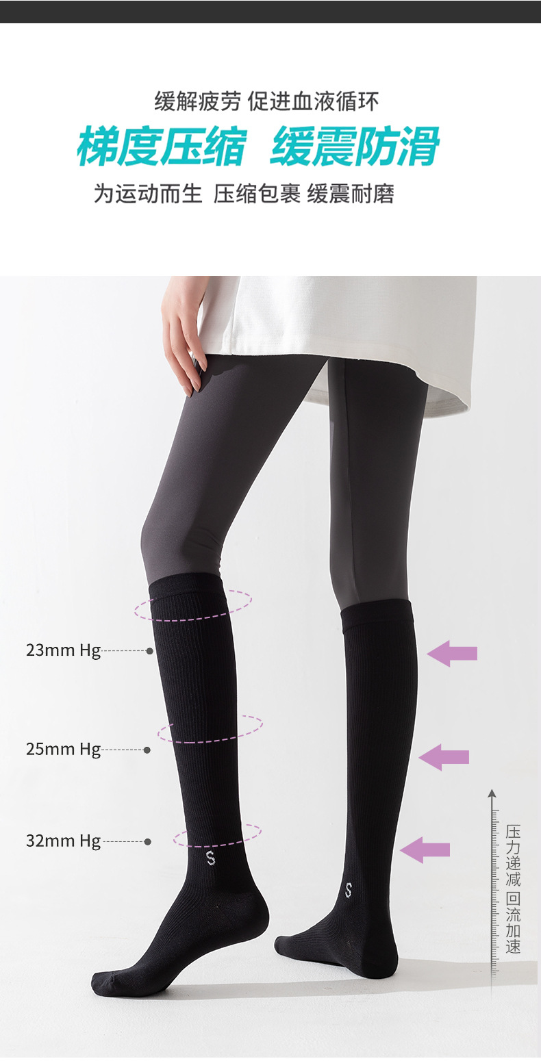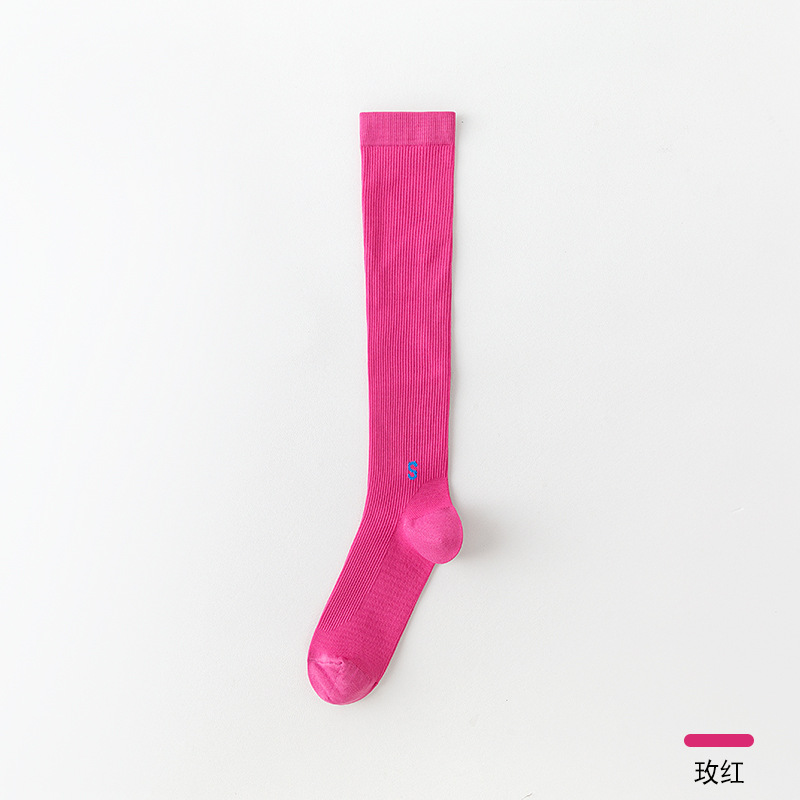 압력 종아리 양말 여성의 봄과 가을 미끄럼 방지 전문 피트니스 운동 긴 튜브 근육 압축 양말 얇은 다리 로프 건너 뛰기 양말스토어 가기