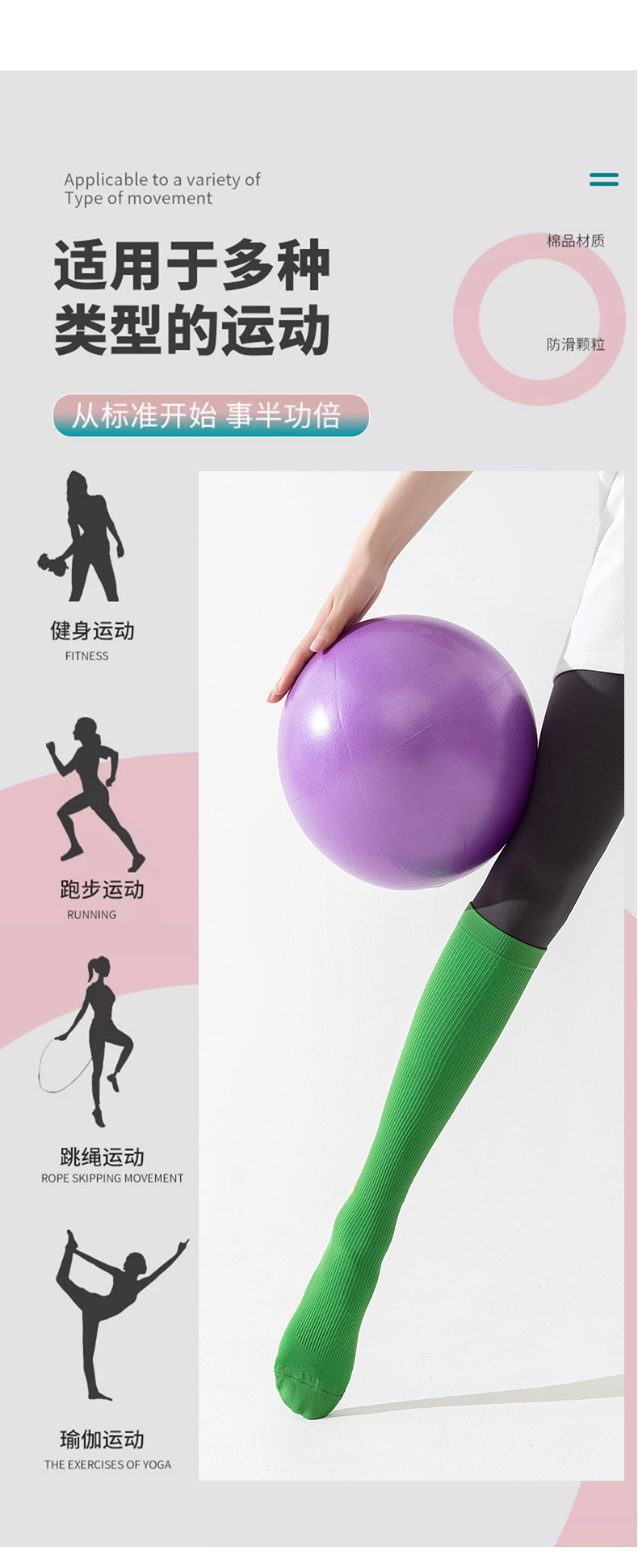 압력 종아리 양말 여성의 봄과 가을 미끄럼 방지 전문 피트니스 운동 긴 튜브 근육 압축 양말 얇은 다리 로프 건너 뛰기 양말