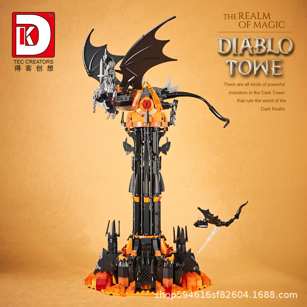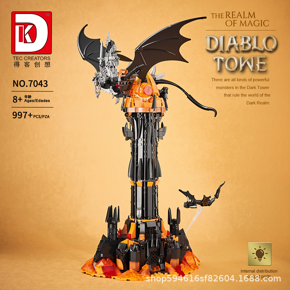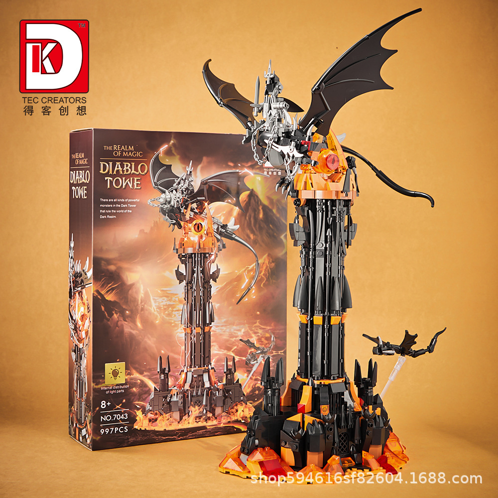 Deke Creative 7043 Dark Magic Tower 조명 에디션 작은 입자 어린이 퍼즐 빌딩 블록 조립 장난감 국경 도매스토어 가기