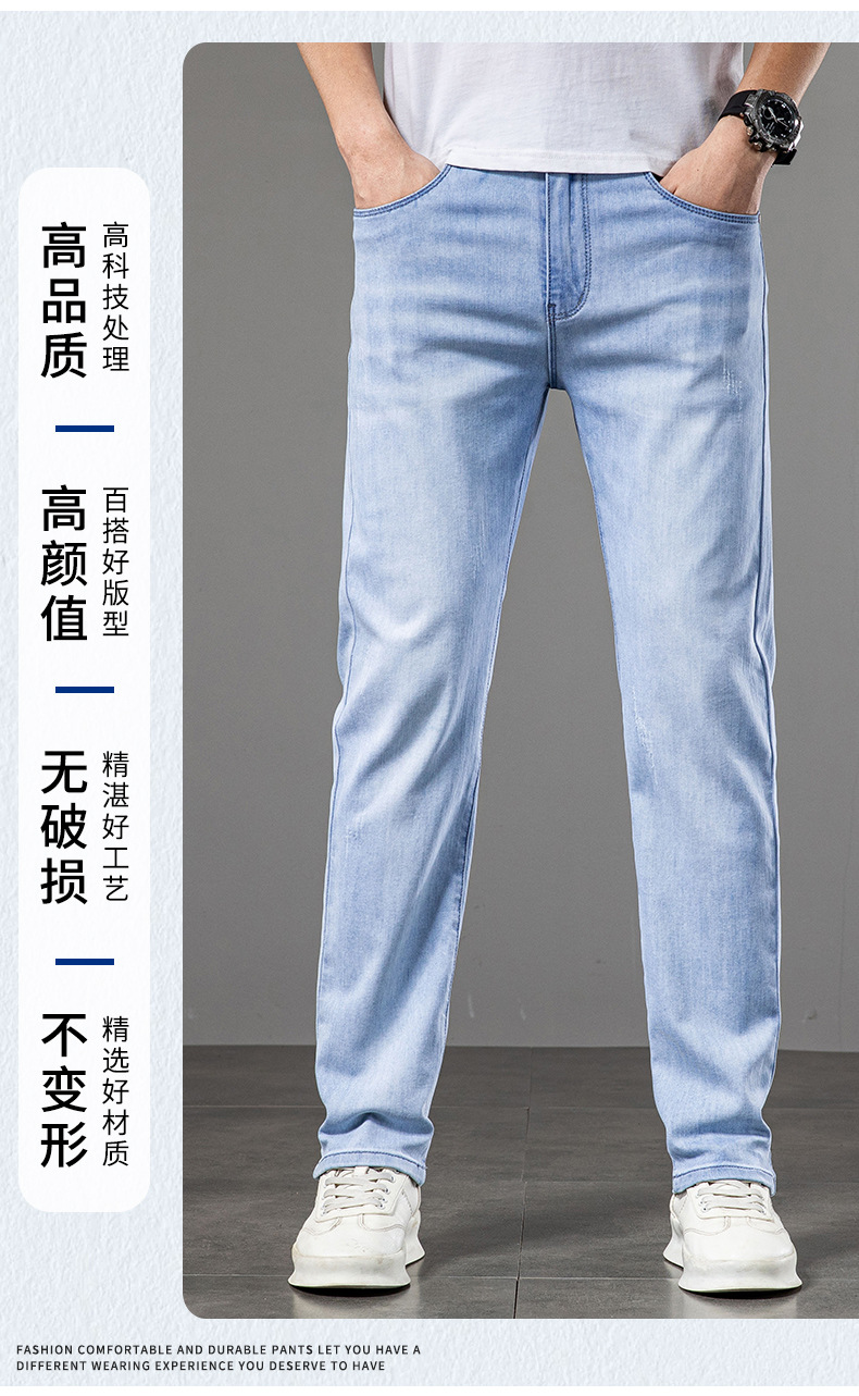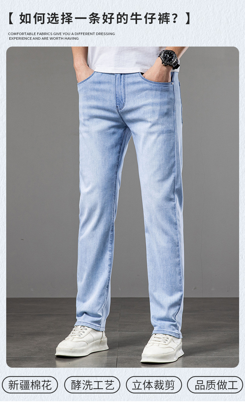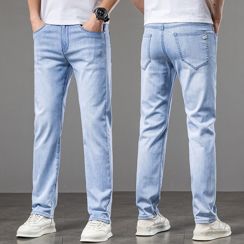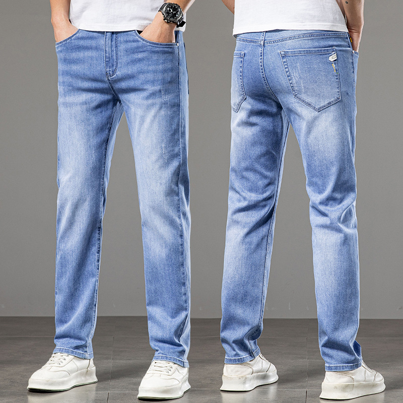 고급 캐주얼 스트레이트 데님 팬츠 남성용 2025 신상 봄 여름 슬림핏 다용도 팬츠 패션 트렌드스토어 가기