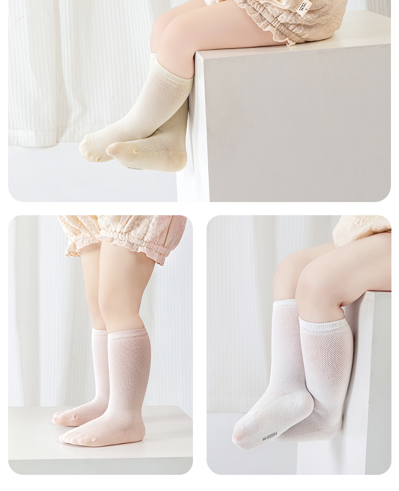 여름 아기 뼈없는 얇은 양말 클래스 A 면 메쉬 방지 모기 양말 작은 다리 양말 학생 양말 아기 소녀 중간 긴 튜브