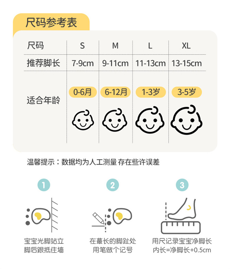 • S 사이즈(발 길이 7-9cm에 적합) 0-6개월