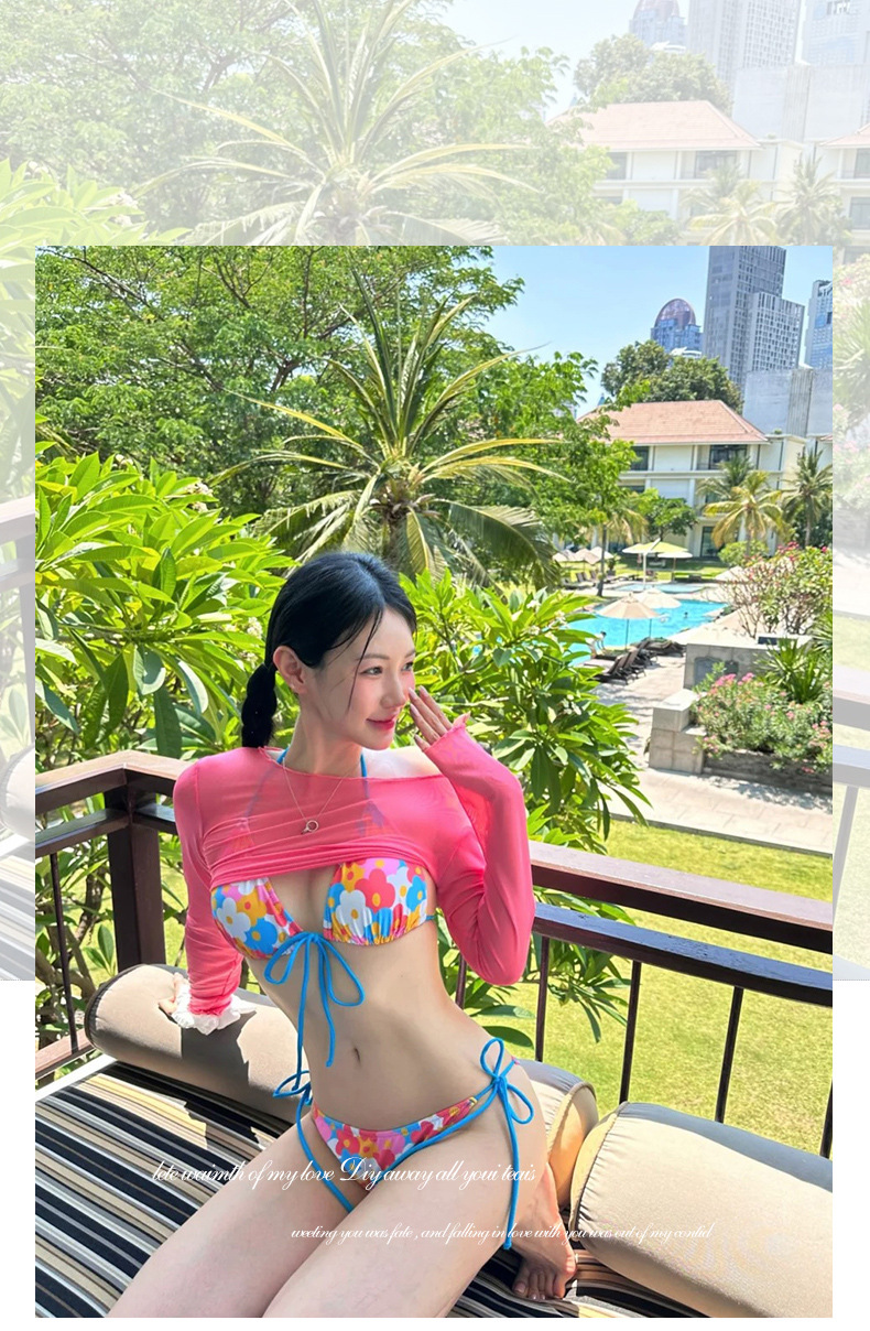2024 새로운 비키니 긴 소매 블라우스 분할 3 조각 세트 인터넷 축하 휴가 해변 수영복 달콤한 수영복 재고스토어 가기