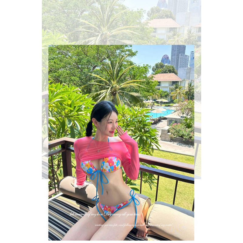 2024 새로운 비키니 긴 소매 블라우스 분할 3 조각 세트 인터넷 축하 휴가 해변 수영복 달콤한 수영복 재고