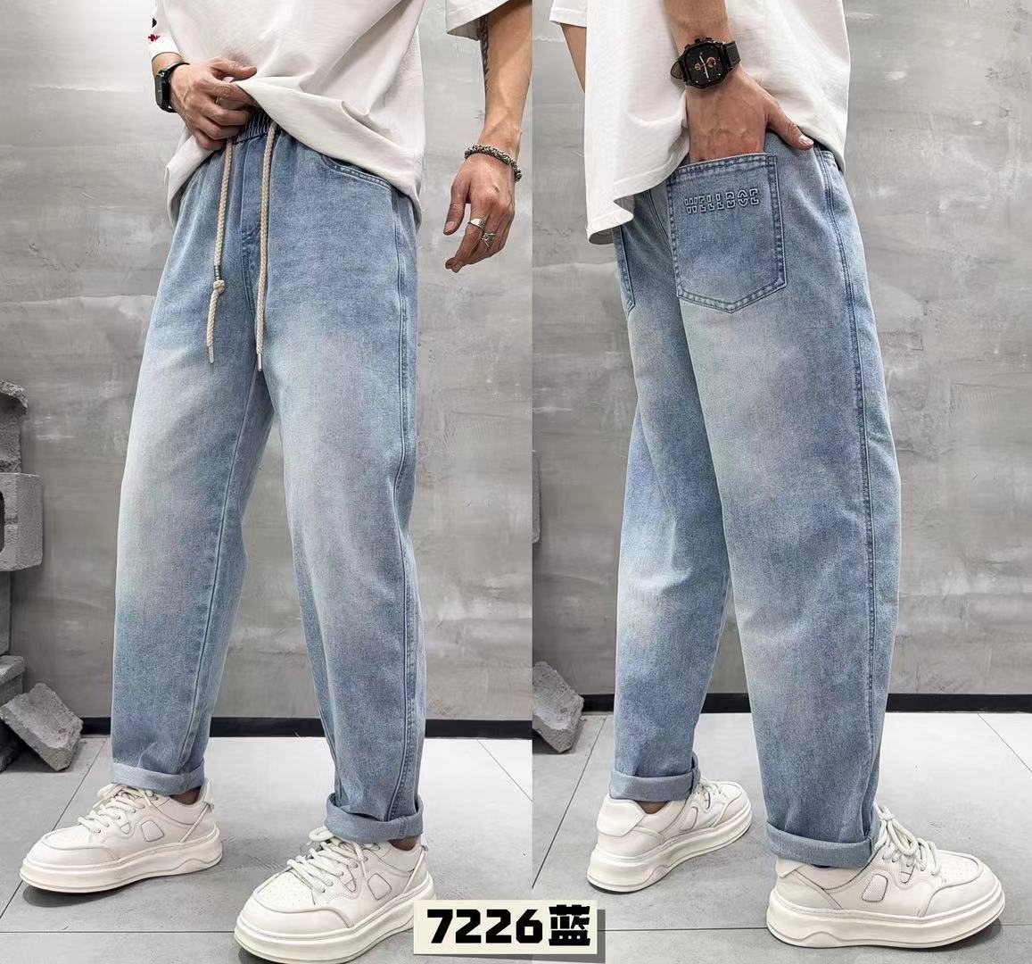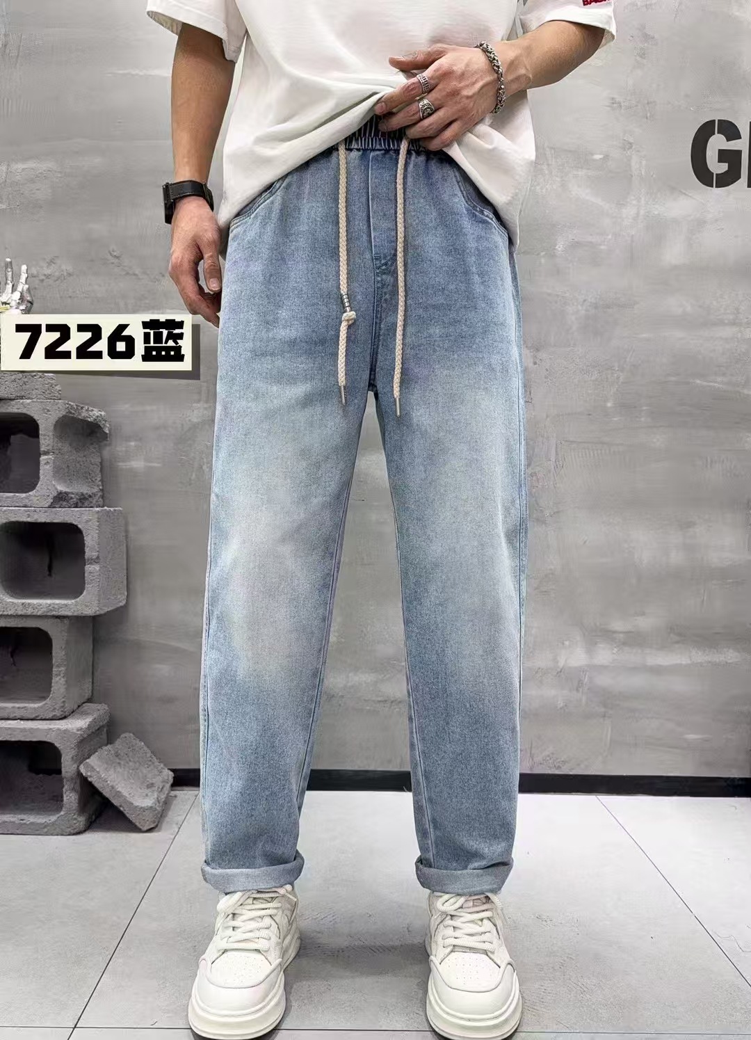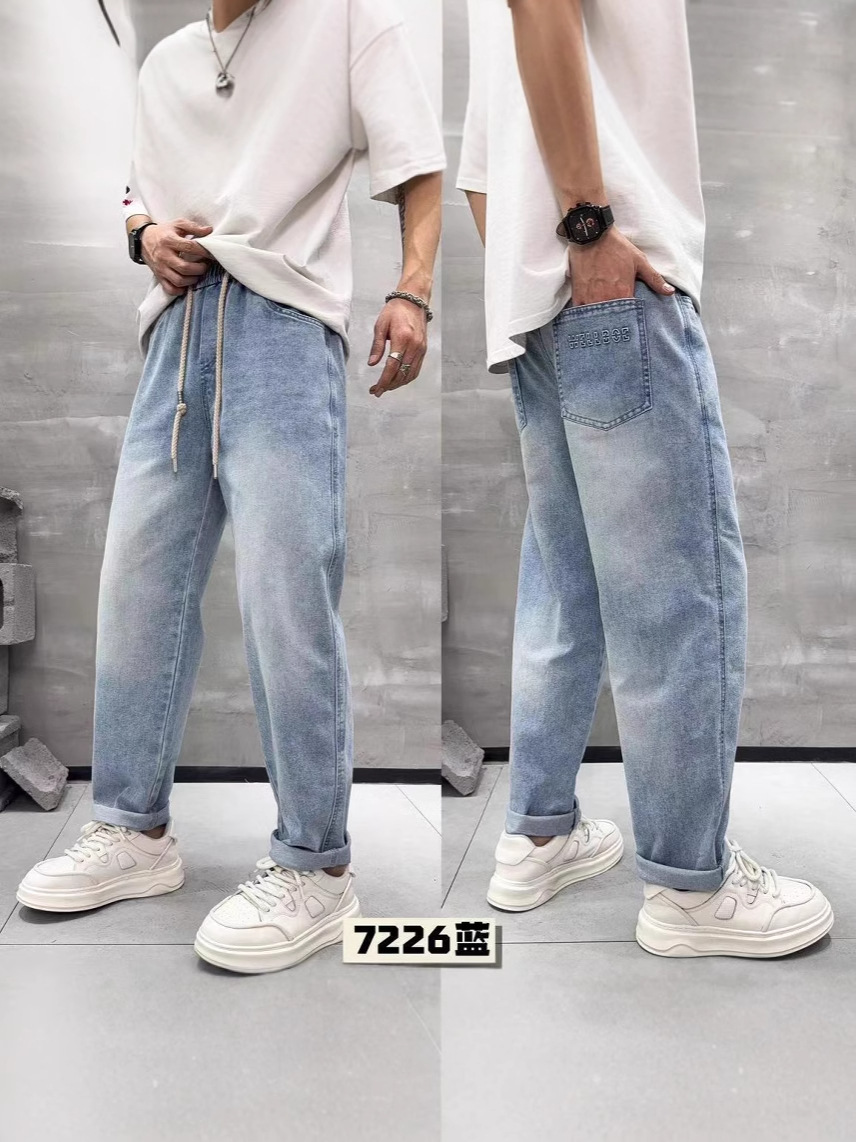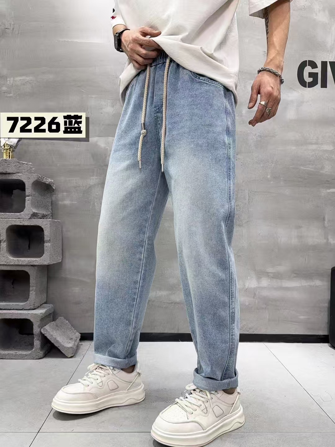2025 봄과 여름 새로운 남자 청바지 아빠 바지 모든 경기 탄성 허리 느슨한 직선 바지 스트레치 캐주얼 바지스토어 가기